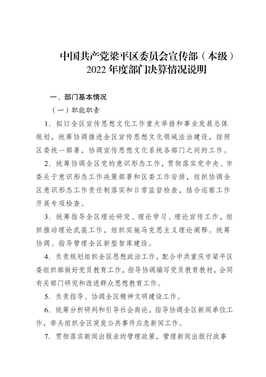 | 標(biāo)題 | 中國共產(chǎn)黨梁平區(qū)委員會宣傳部(本級) 2022年度部門決算情況說明 | ||