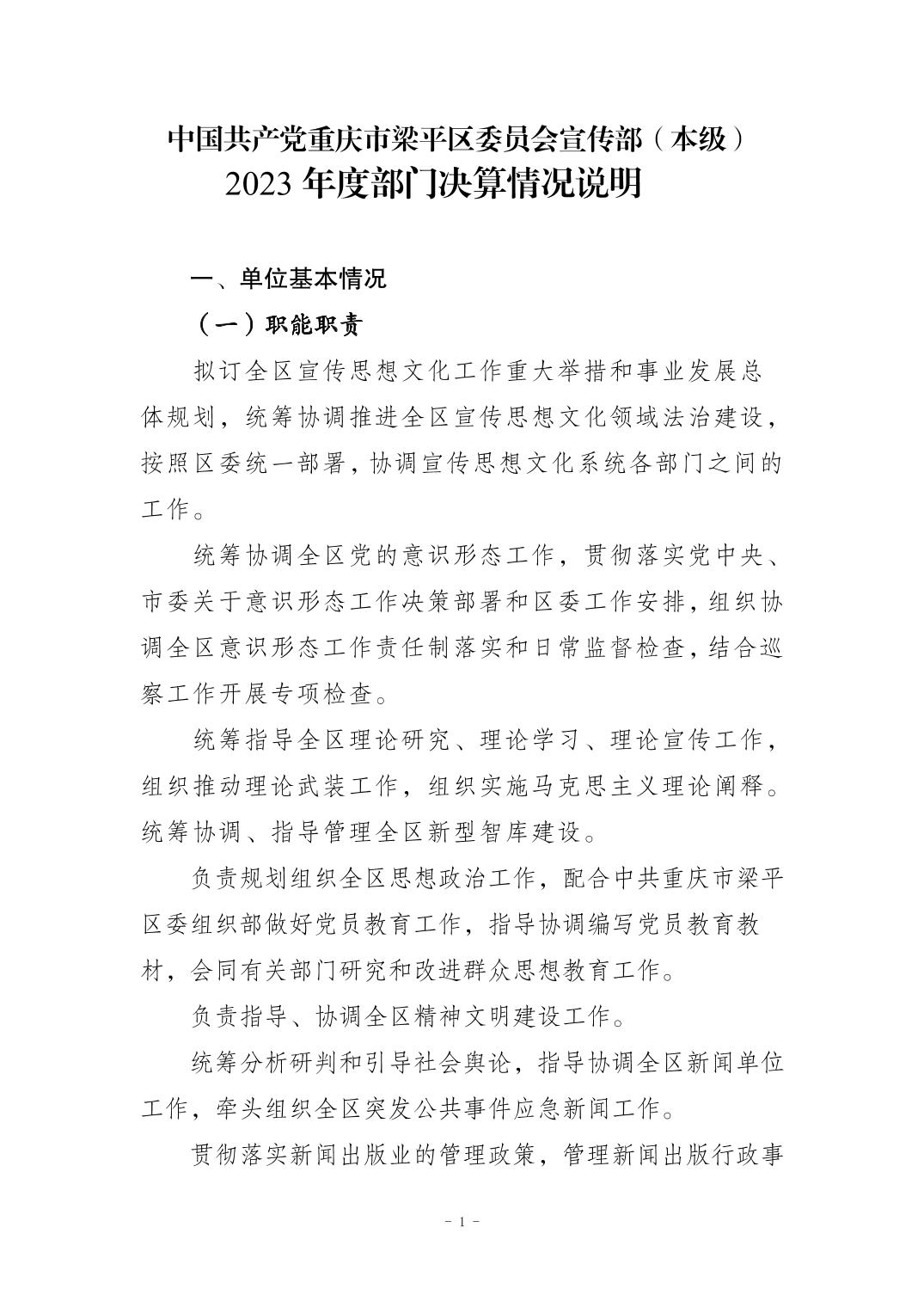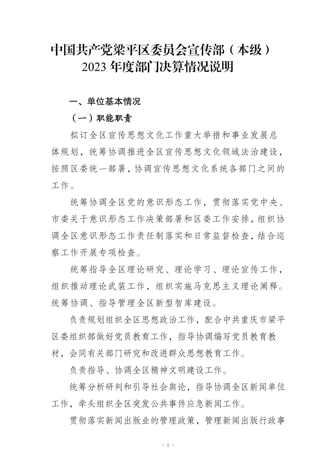 | 標(biāo)題 | 中國(guó)共產(chǎn)黨重慶市梁平區(qū)委員會(huì)宣傳部(本級(jí))2023年度決算公開(kāi)說(shuō)明 | ||