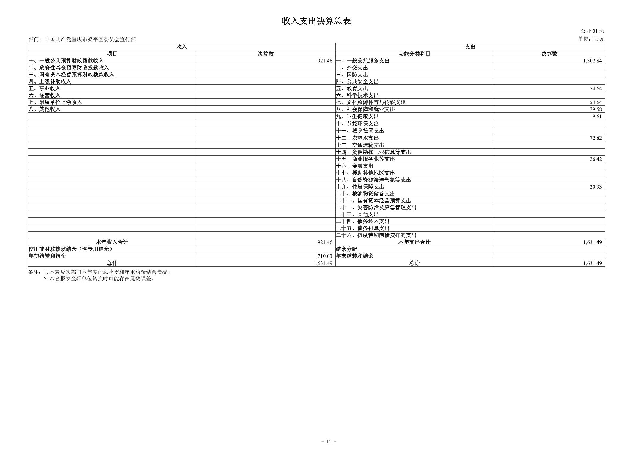 | 標題 | 中國共產黨重慶市梁平區委員會宣傳部 2024 年度決算公開說明 |