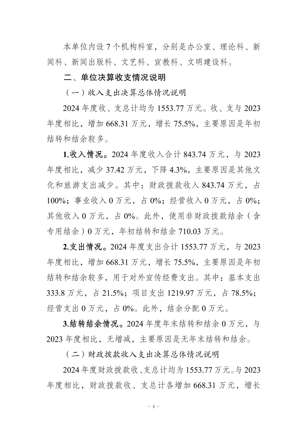 | 標題 | 中國共產黨重慶市梁平區委員會宣傳部 (本級) 2024 年度決算公開說明 | ||