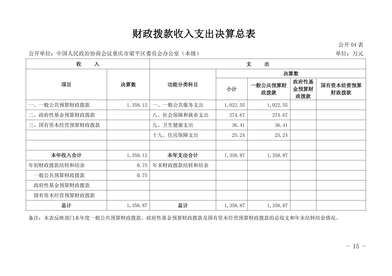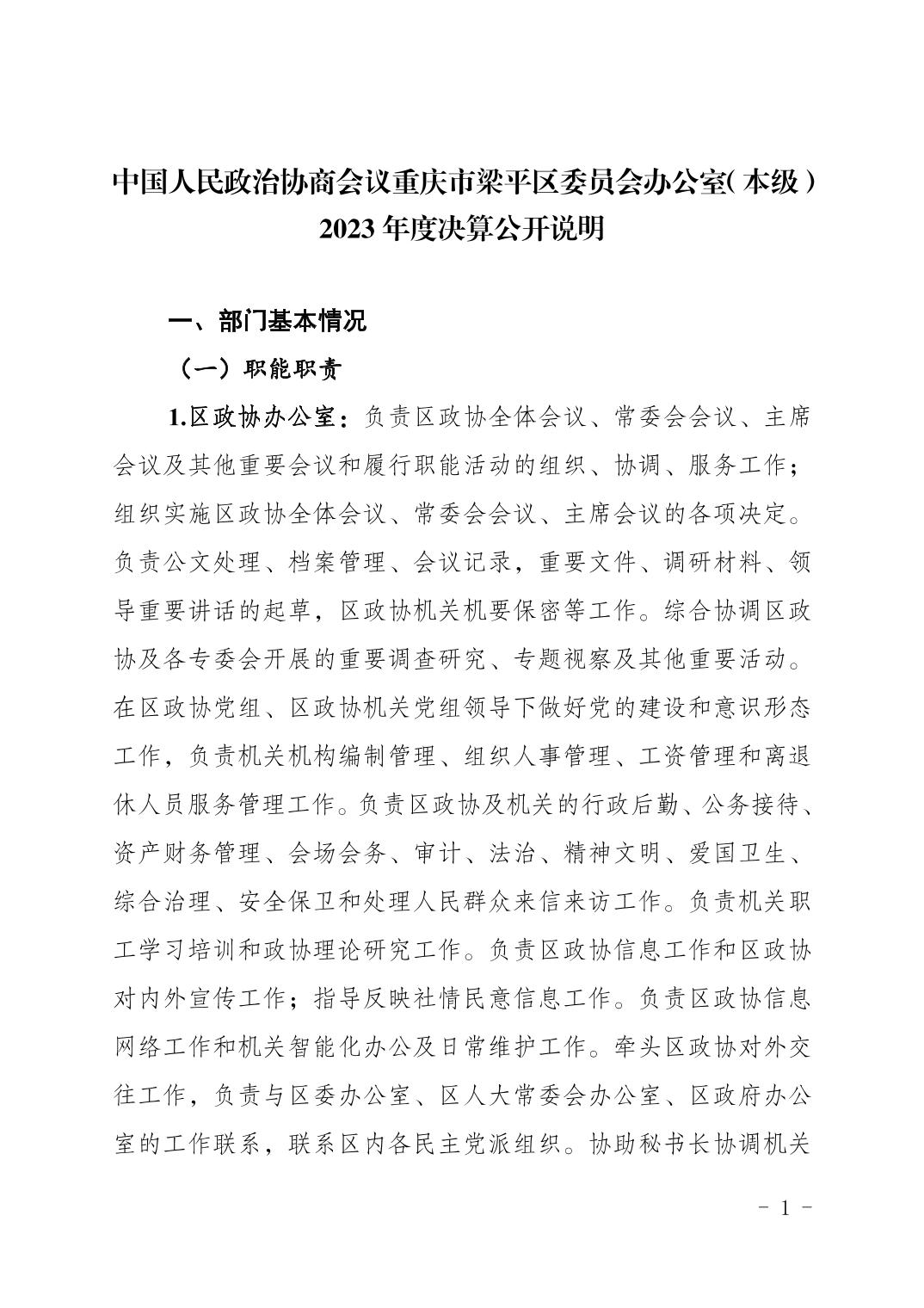 | 標題 | 重慶市梁平區政協辦公室2023年度決算公開說明 |