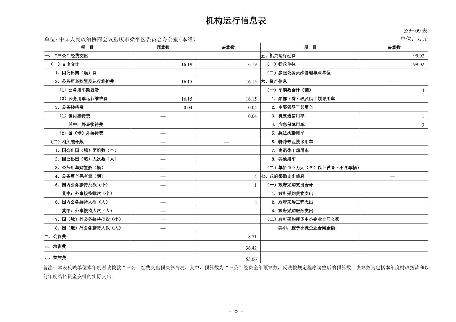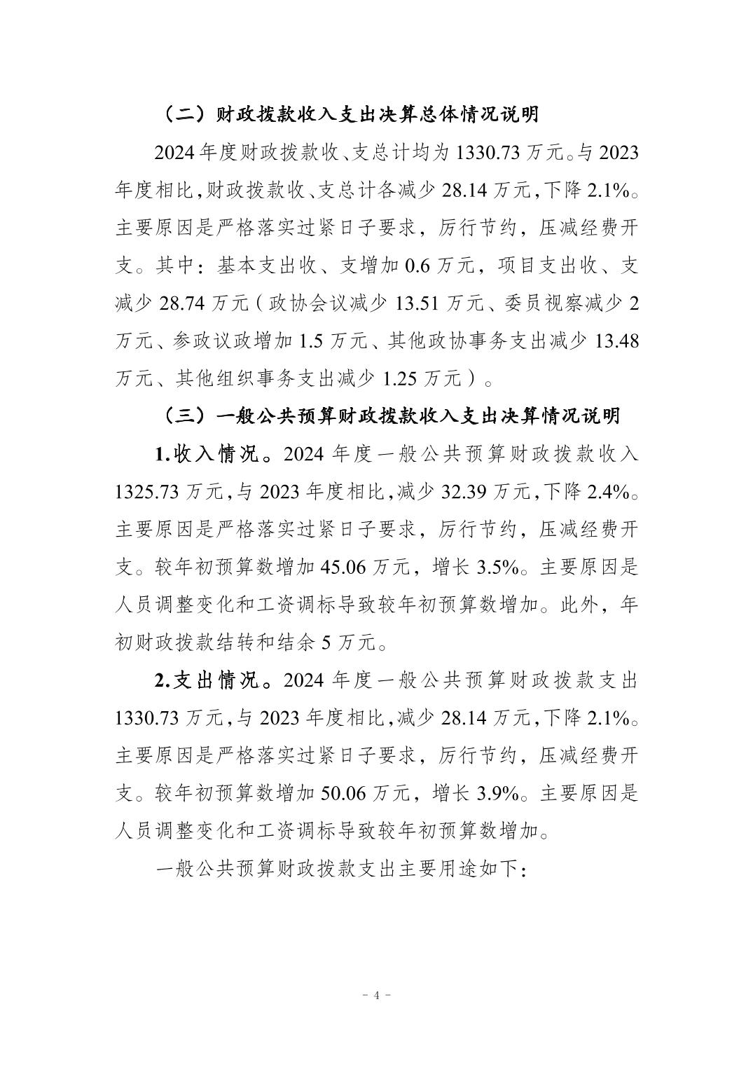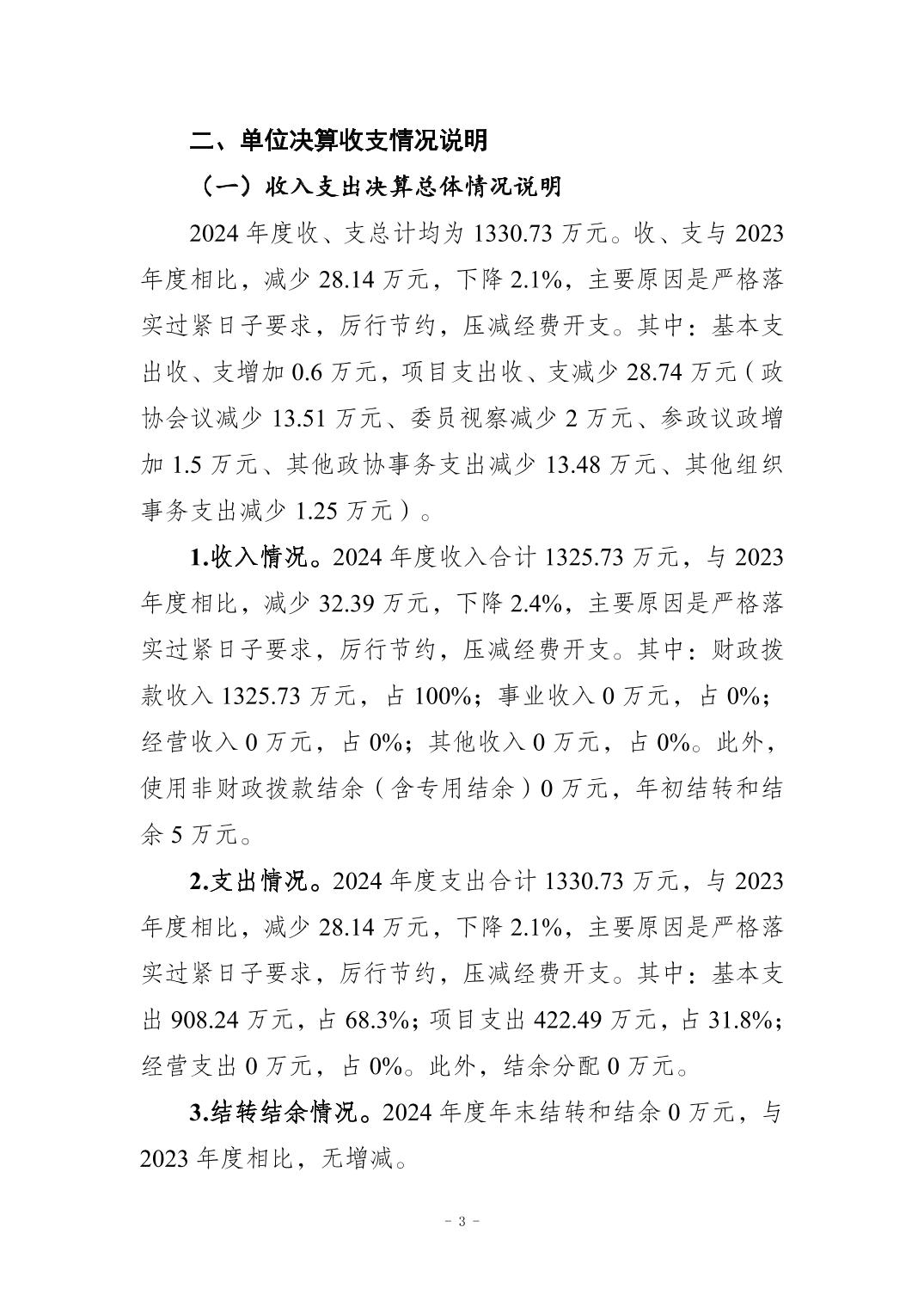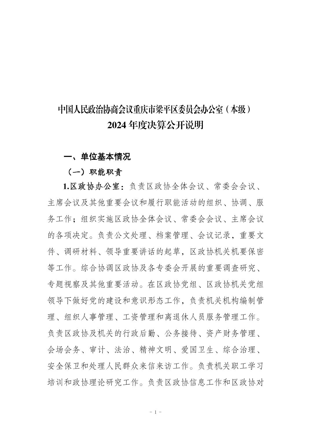 標題 中國人民政治協商會議重慶市梁平區委員會辦公室(本級) 2024 年度決算公開說明