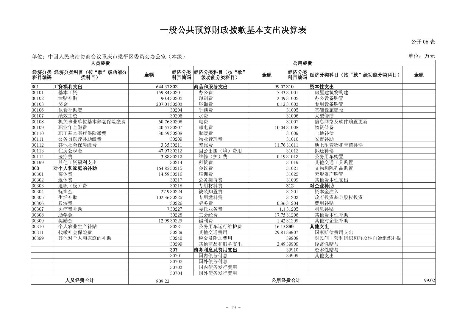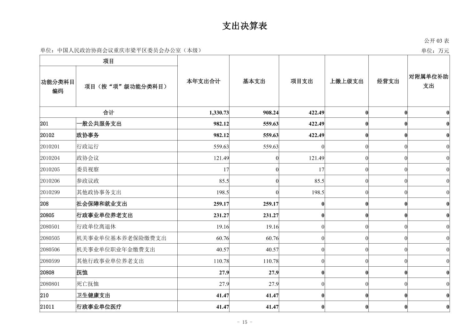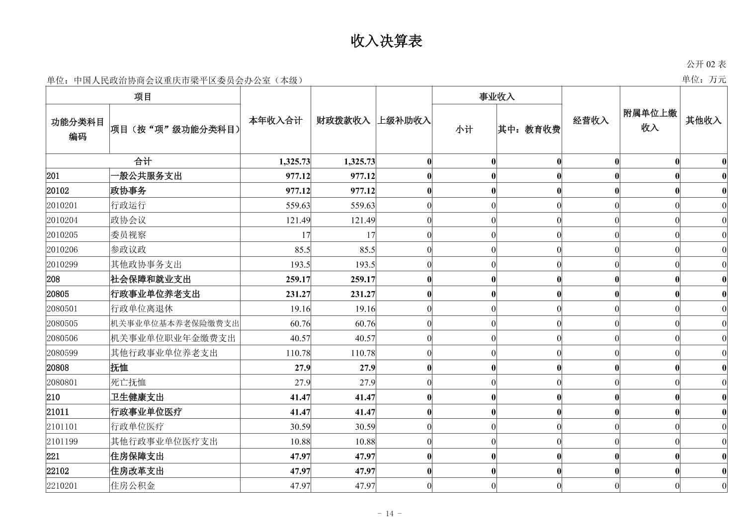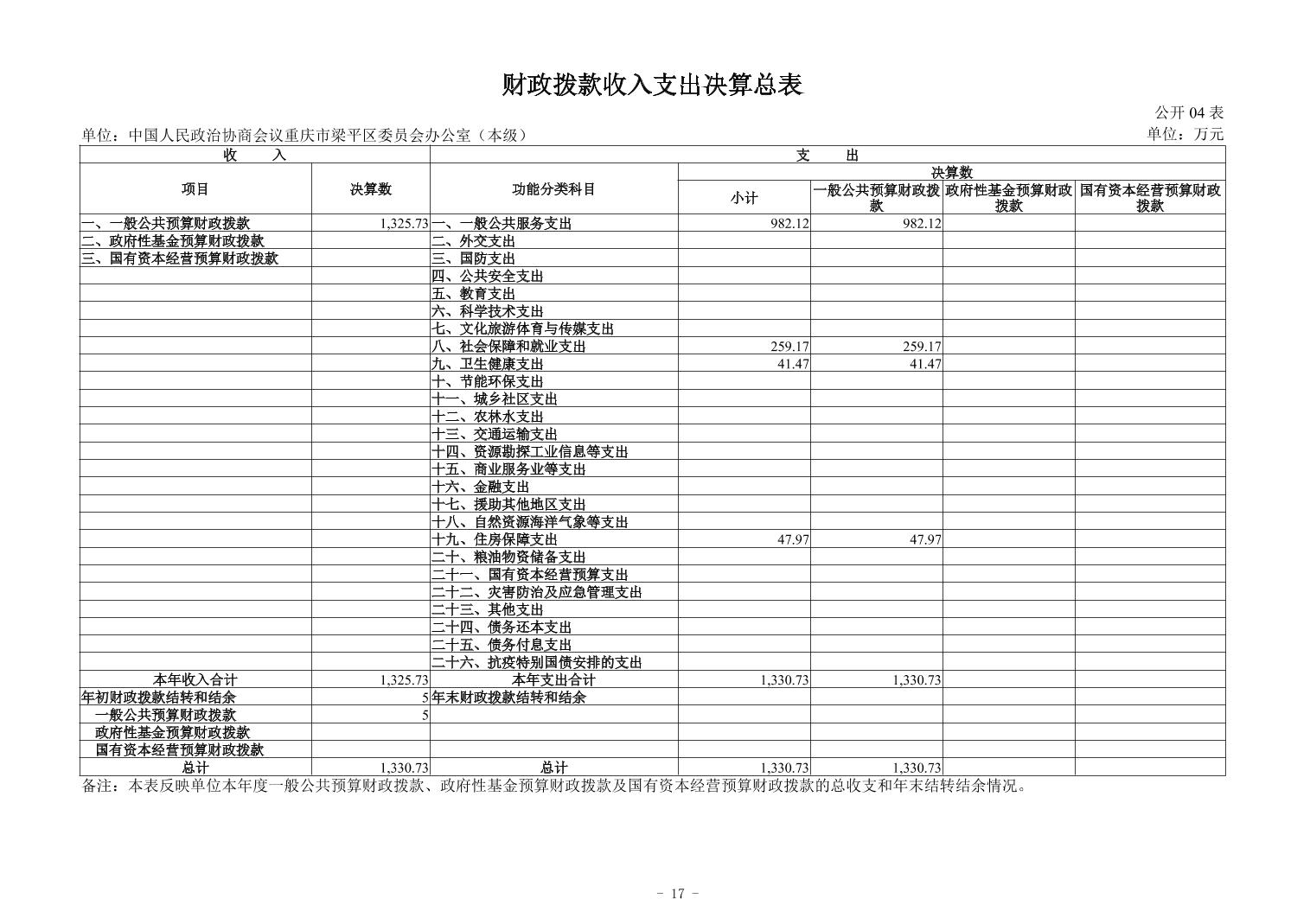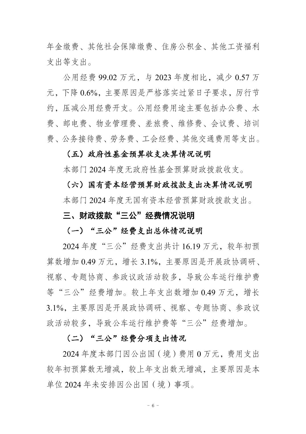 標題 中國人民政治協商會議重慶市梁平區委員會辦公室(本級) 2024 年度決算公開說明