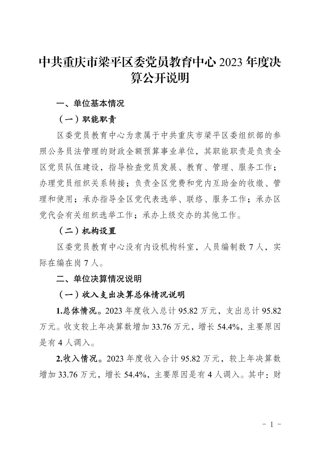 | 標題 | 中共重慶市梁平區委黨員教育中心2023年度決算公開說明 |