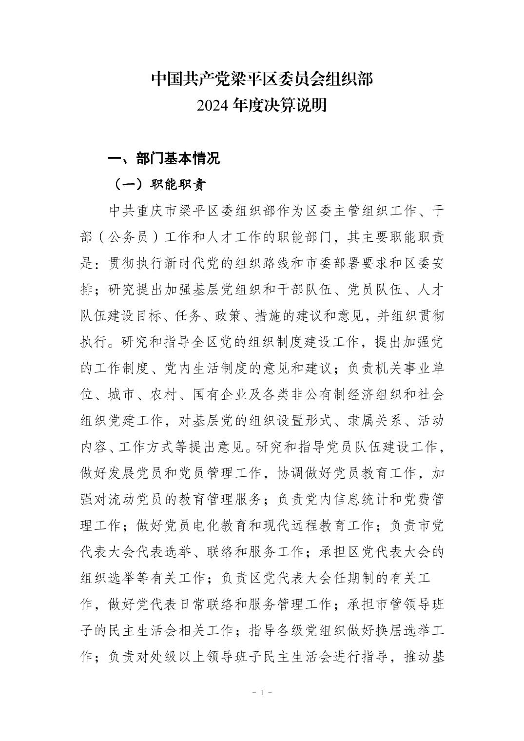 | 標題 | 中國共產黨梁平區委員會組織部 2024 年度決算公開說明 | ||