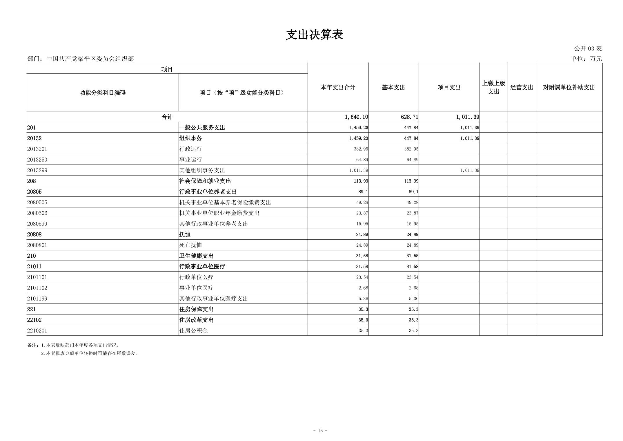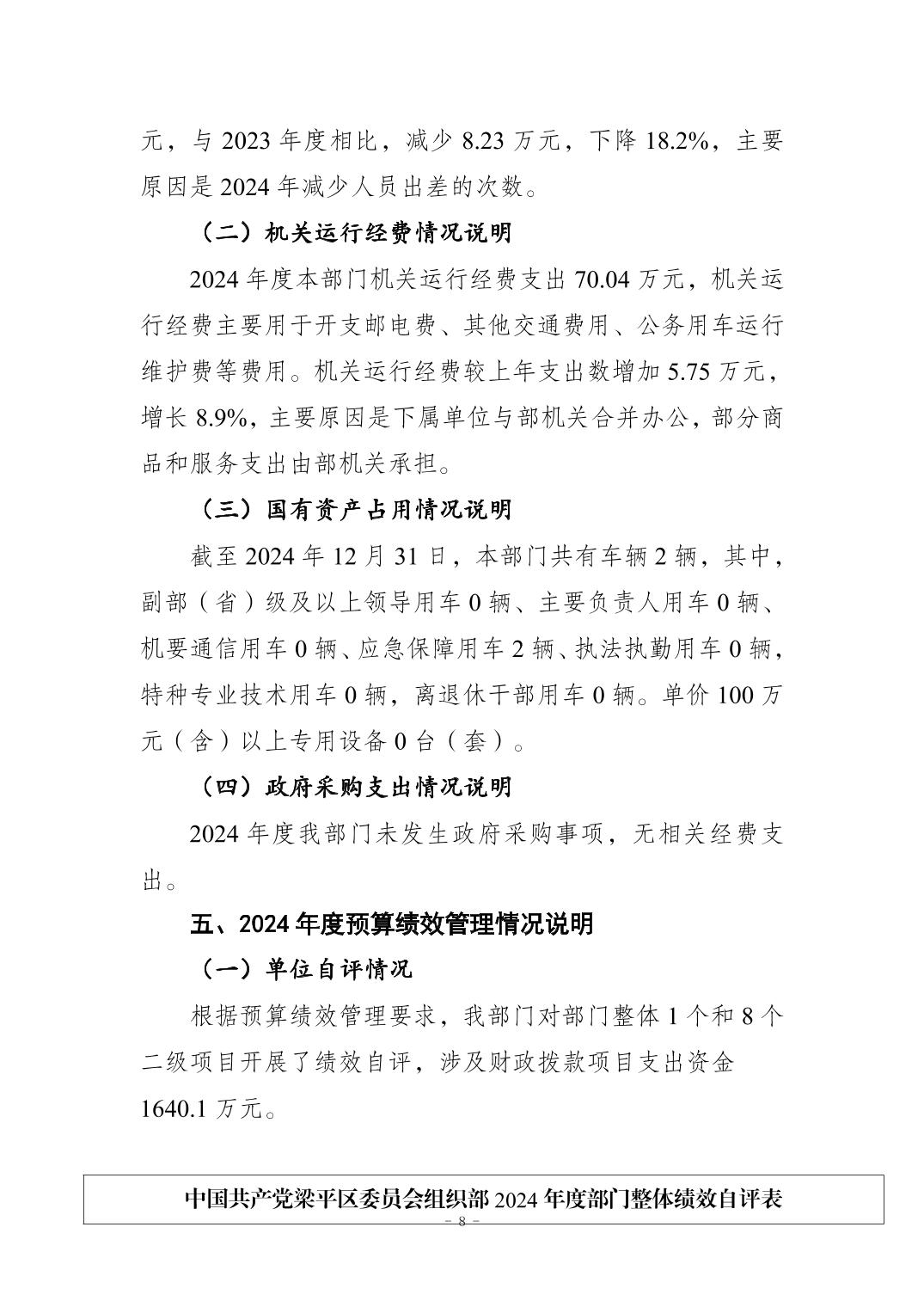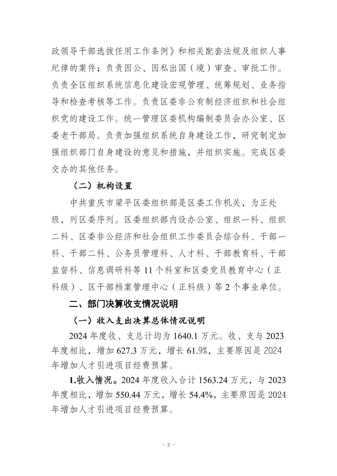 | 標題 | 中國共產黨梁平區委員會組織部 2024 年度決算公開說明 |