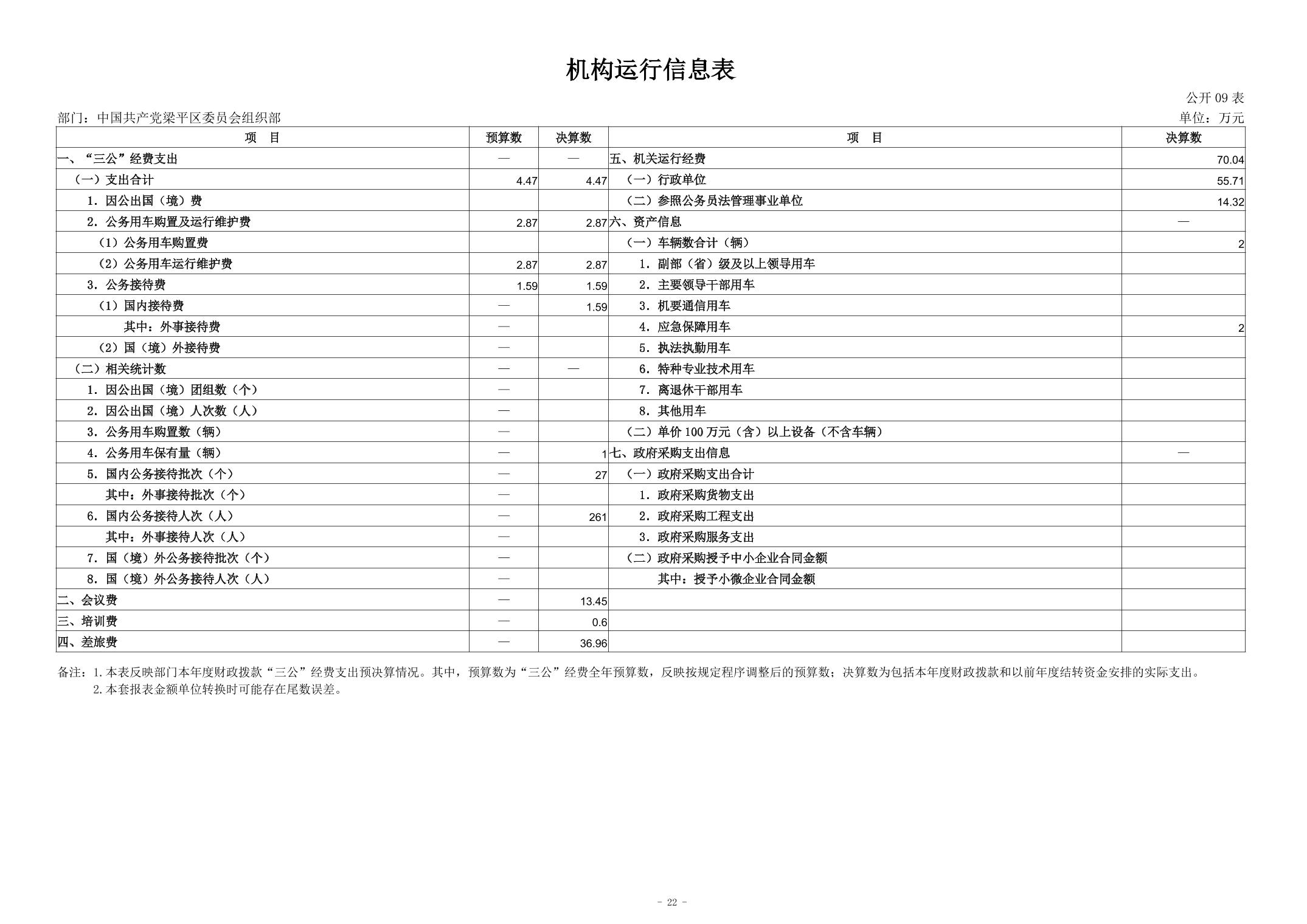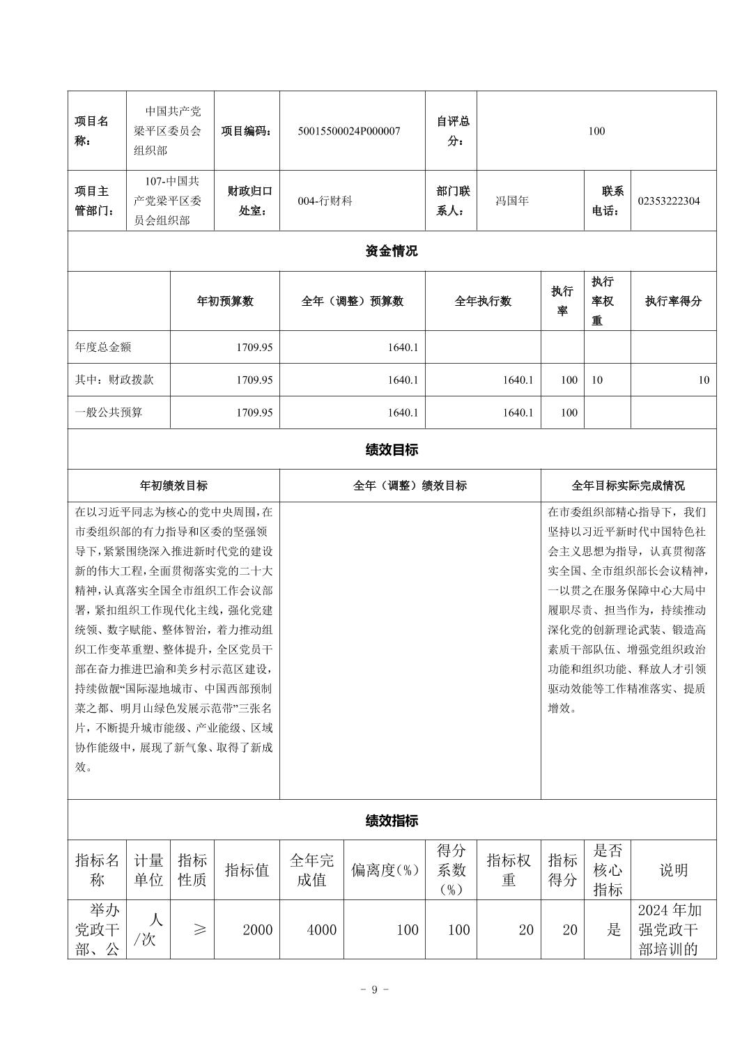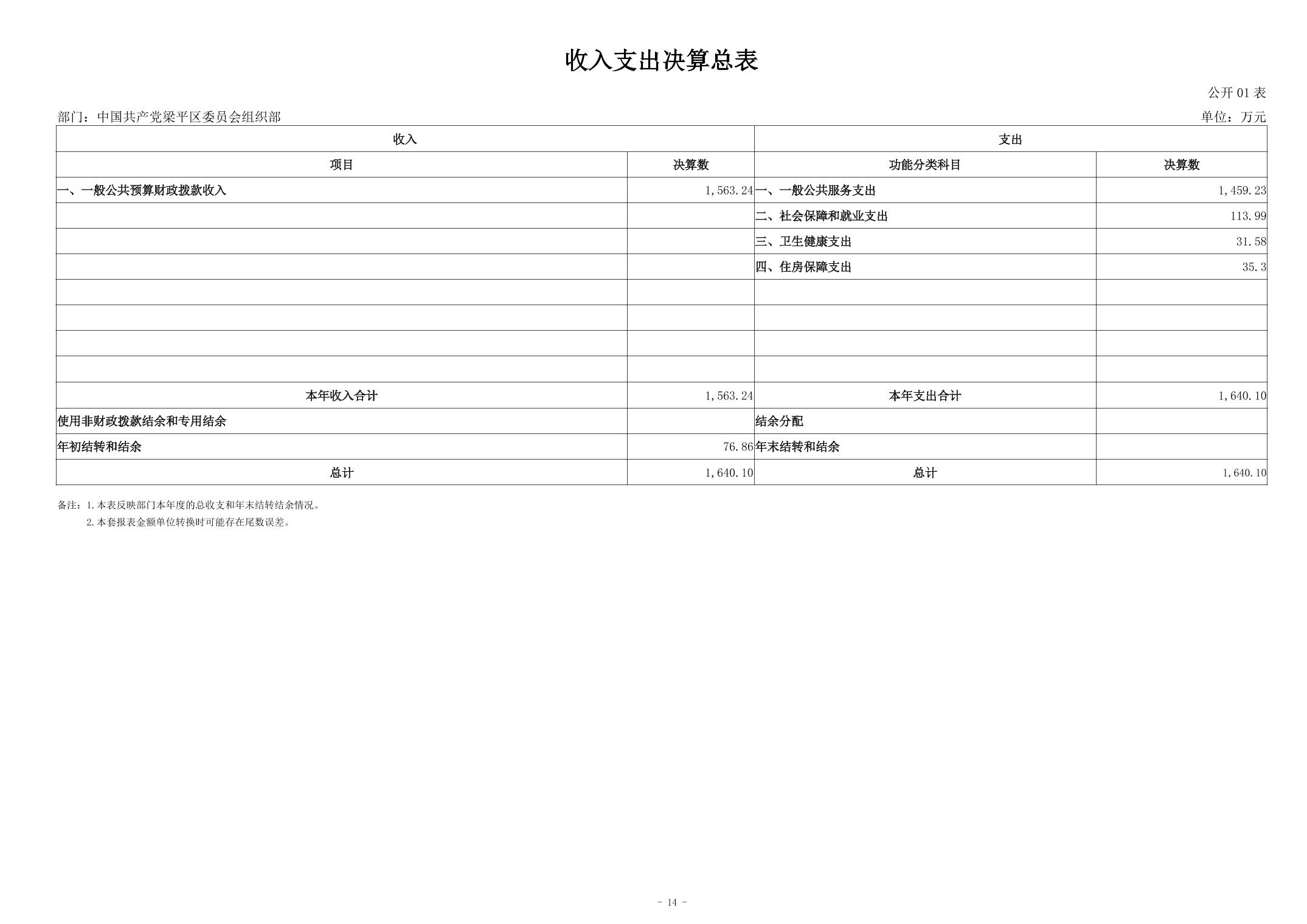 | 標題 | 中國共產黨梁平區委員會組織部 2024 年度決算公開說明 |