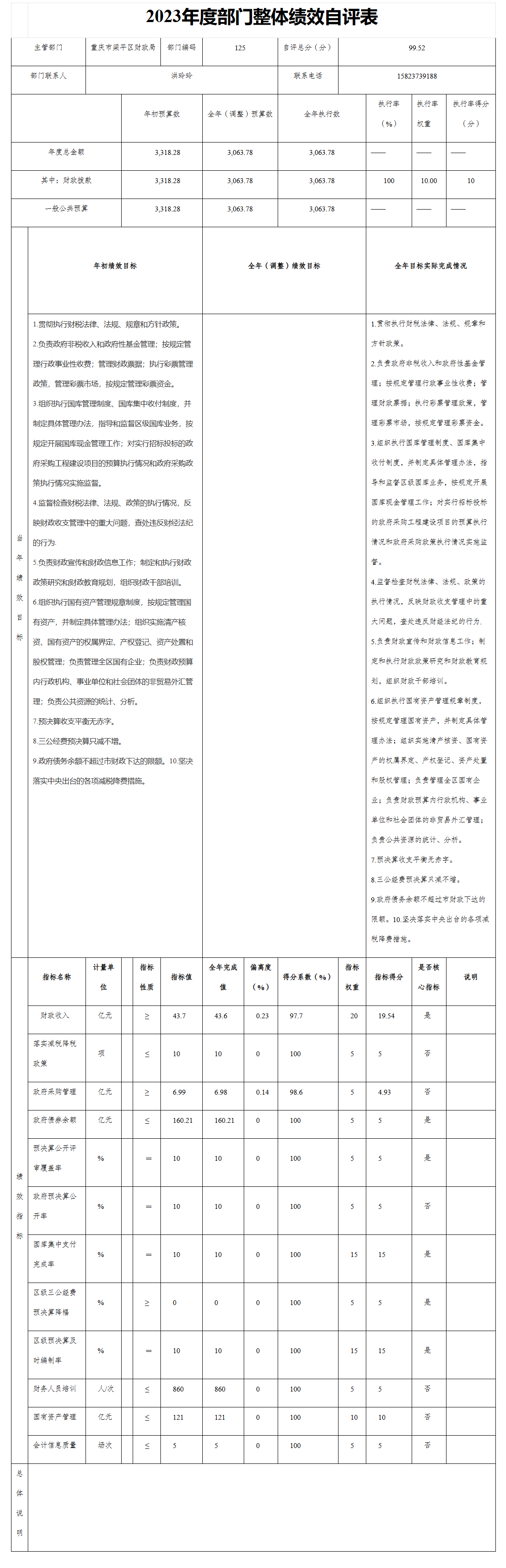 我單位 2023年度對部門整體開展了績效自評,涉及財政撥款資金3063.78萬元。