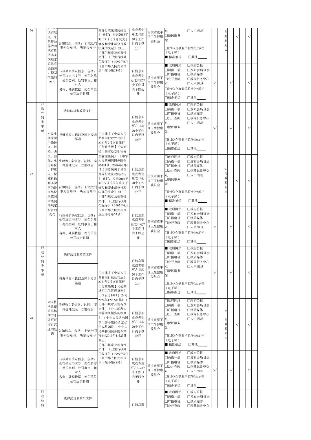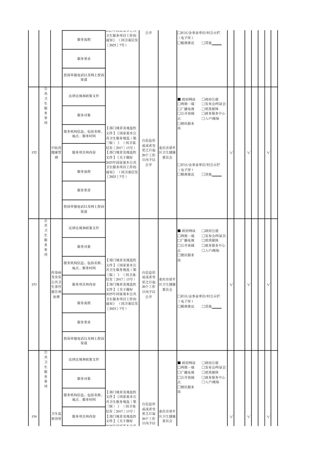 重慶市梁平區衛生健康領域基層政務公開標準目錄
