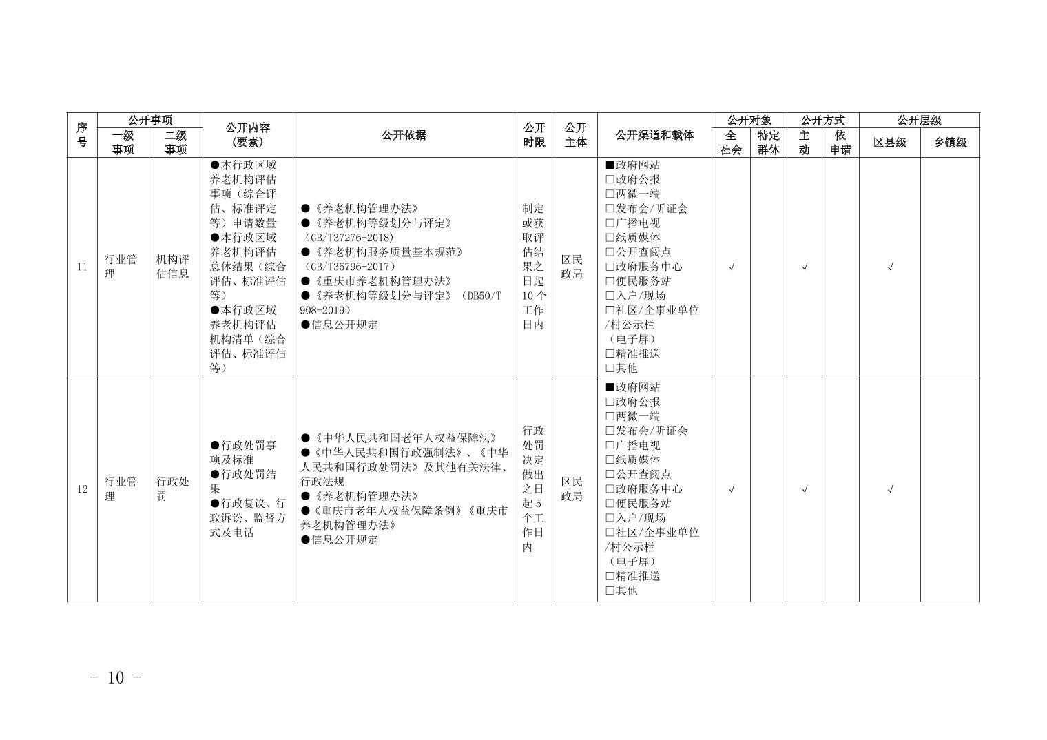 重慶市梁平區養老服務領域基層政務公開標準目錄(2026年)