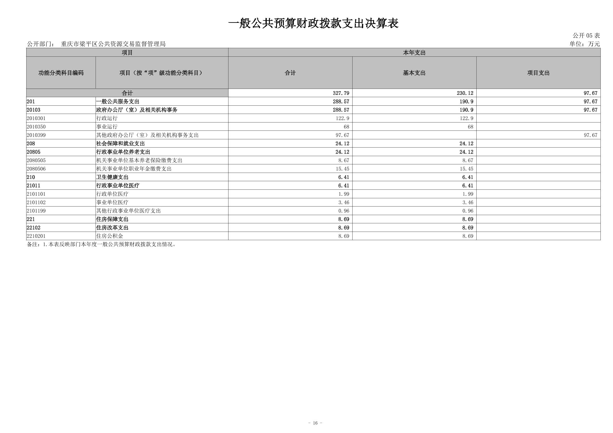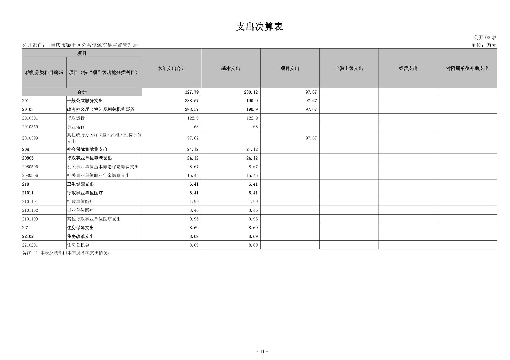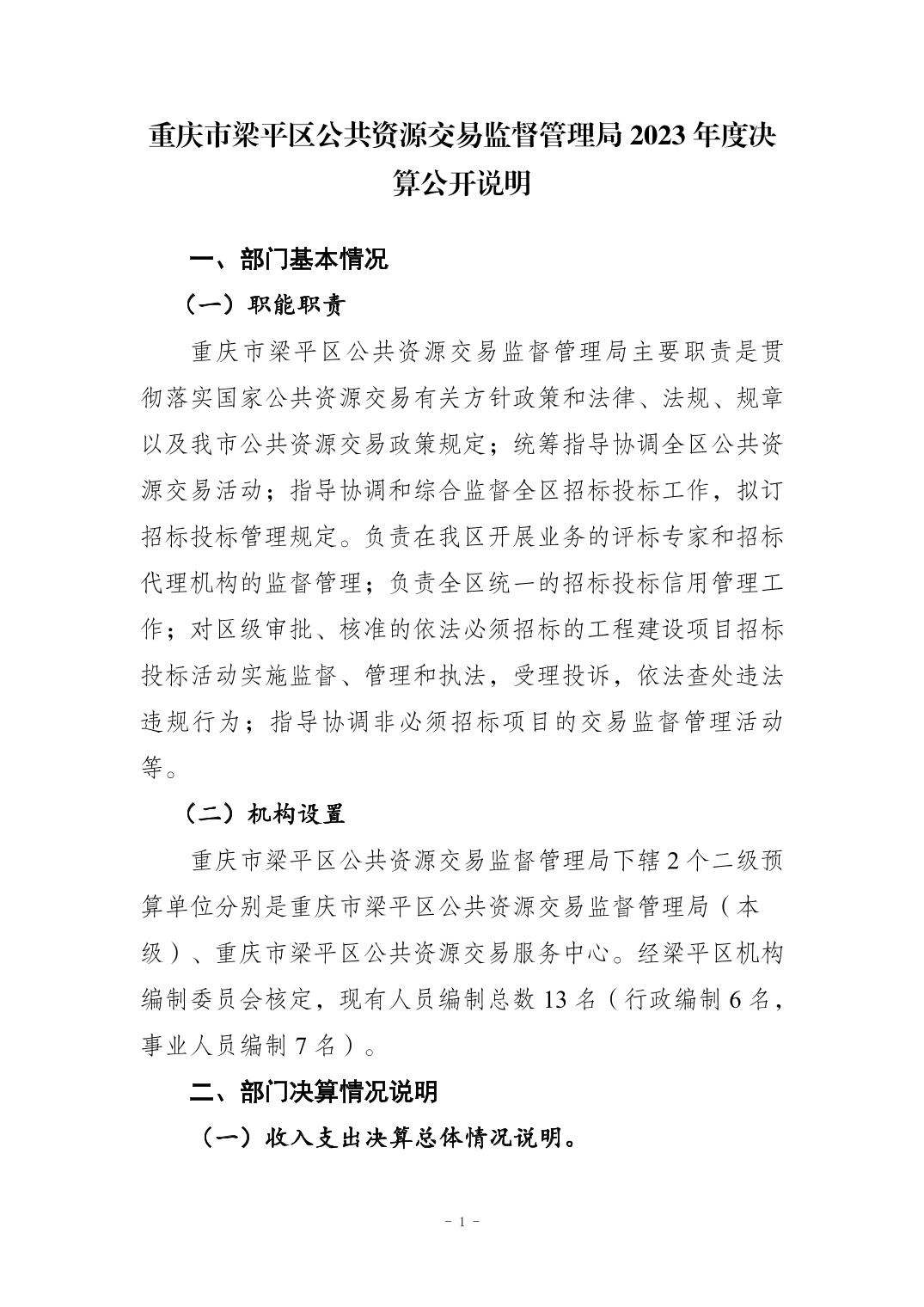 標題 重慶市梁平區公共資源交易監督管理局2023年度決算公開說明及公開報表
