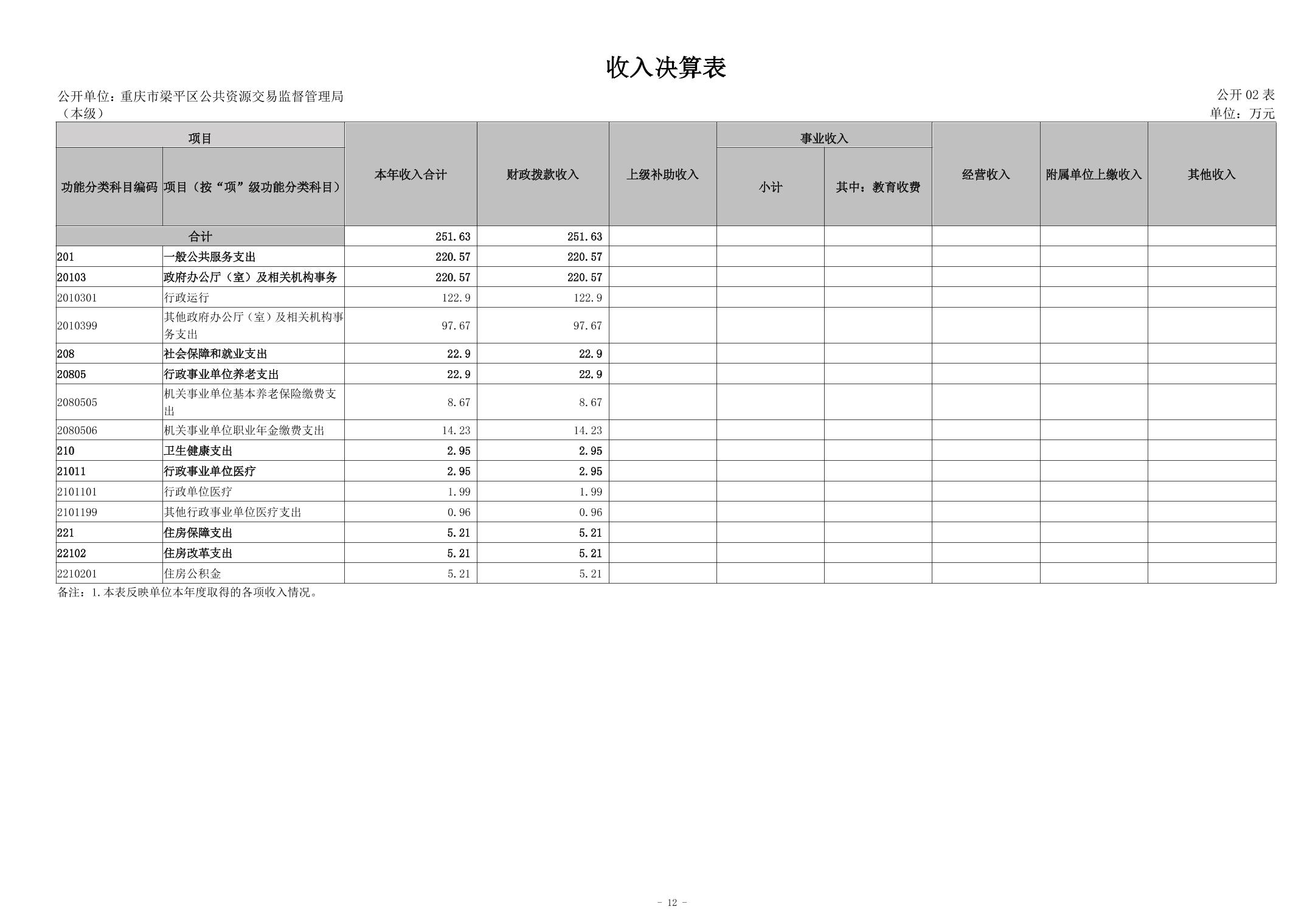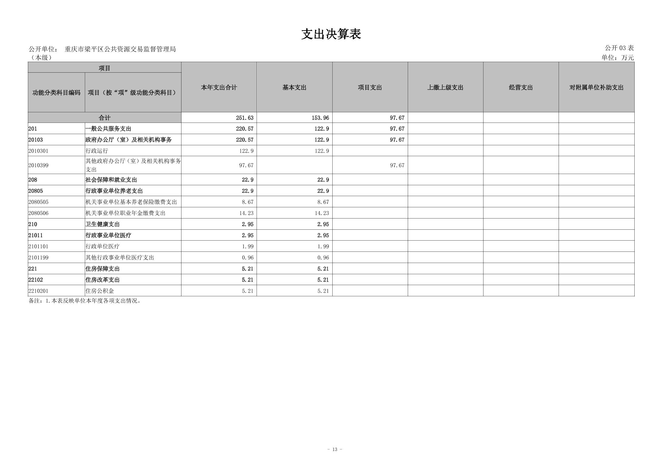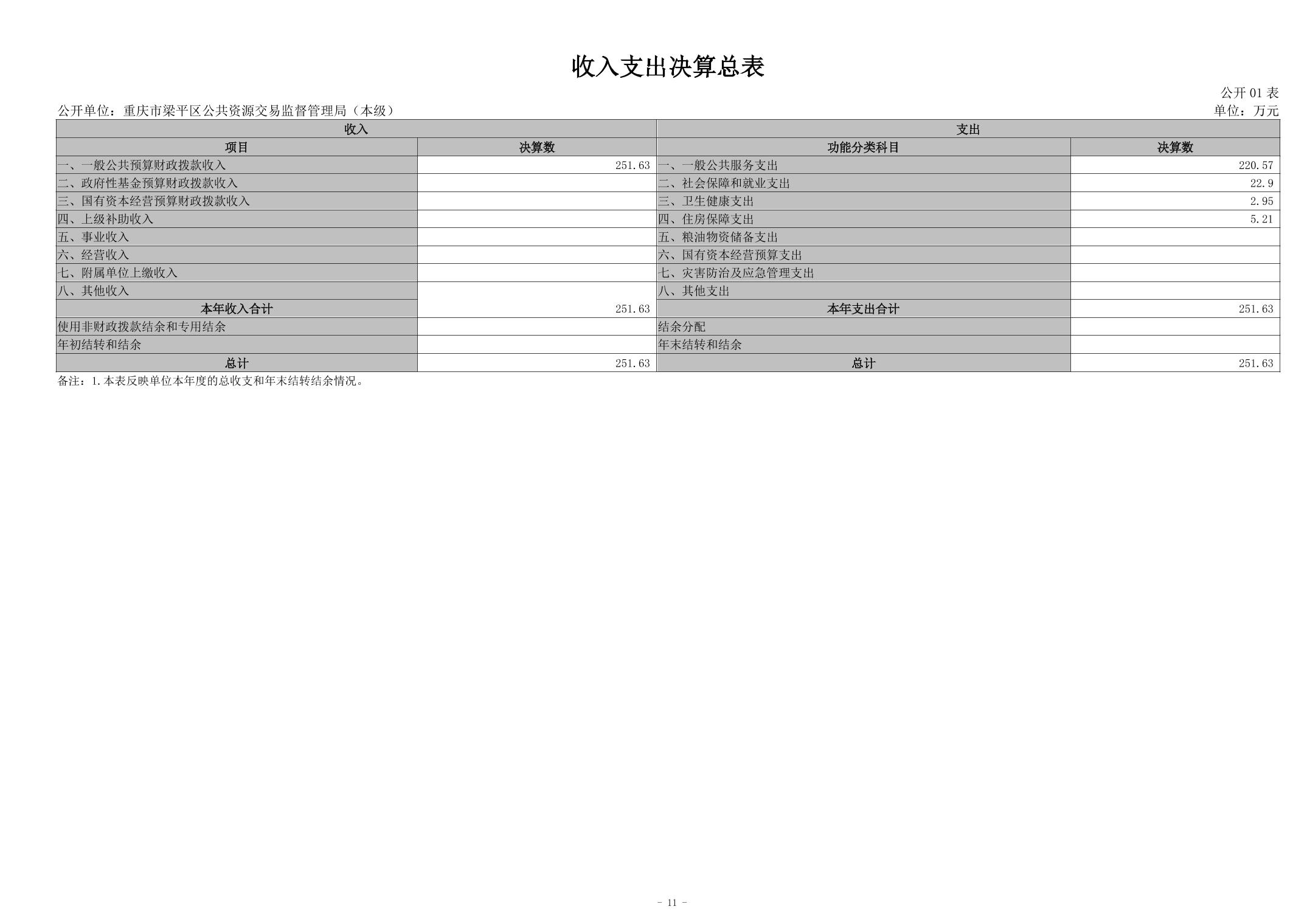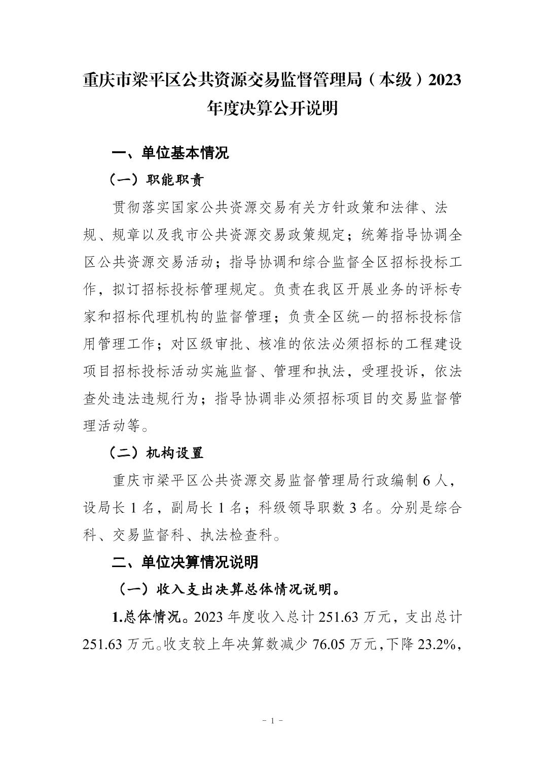 | 標題 | 重慶市梁平區公共資源交易監督管理局(本級)2023年度決算公開說明及公開報表 |