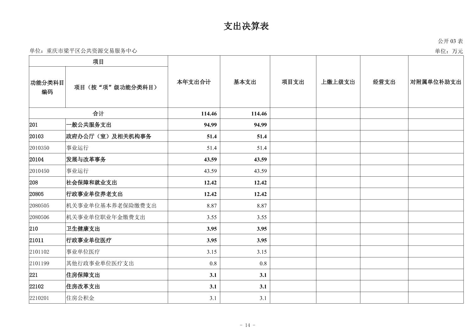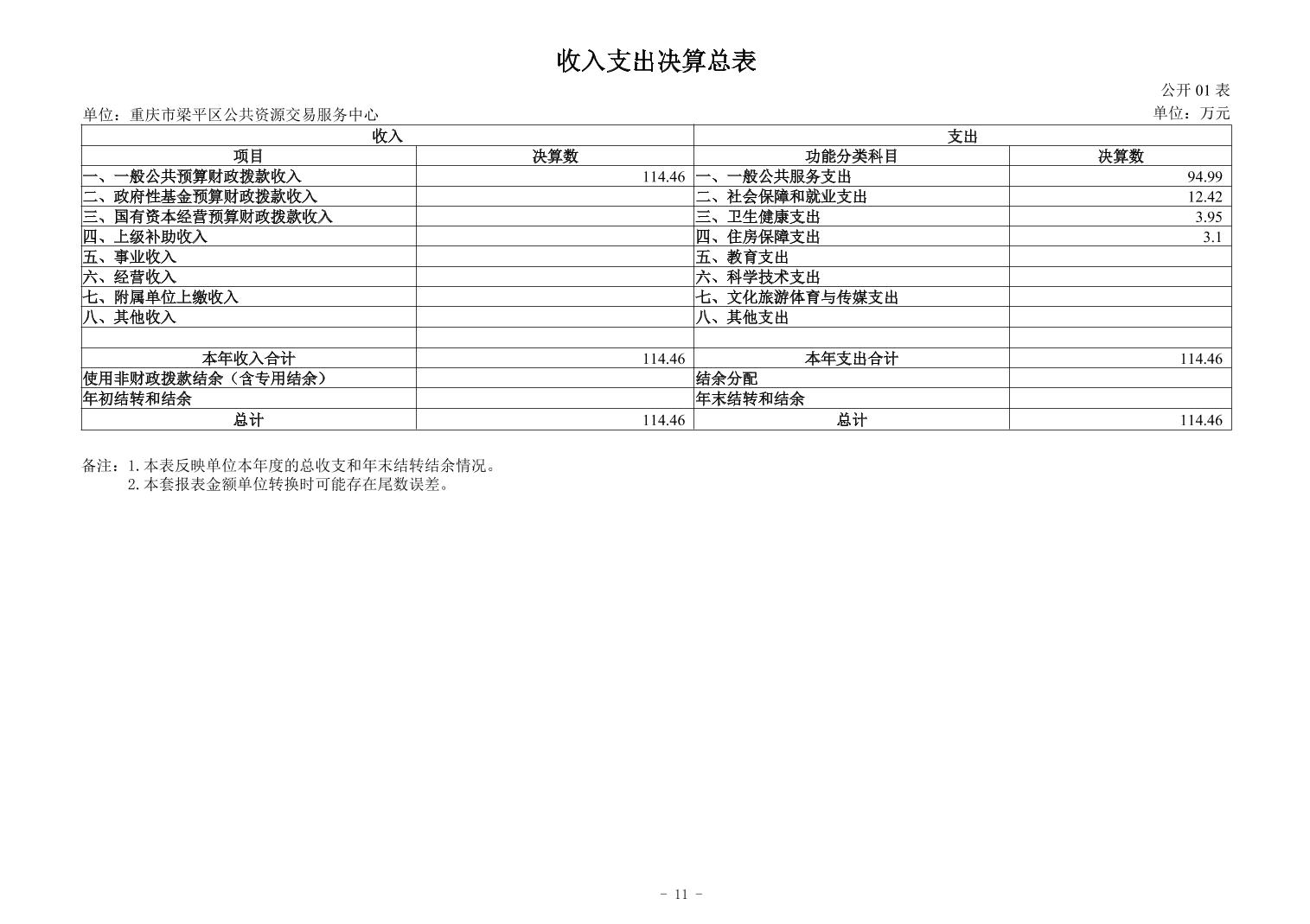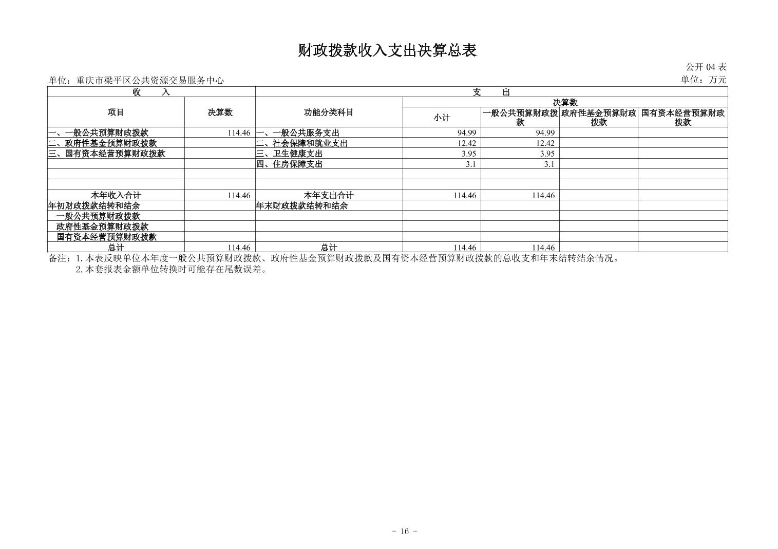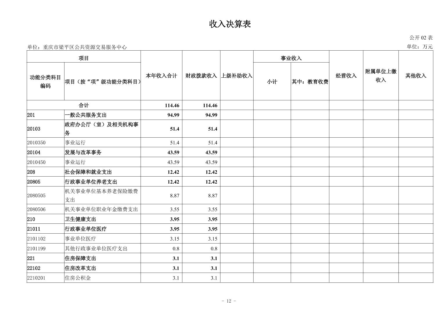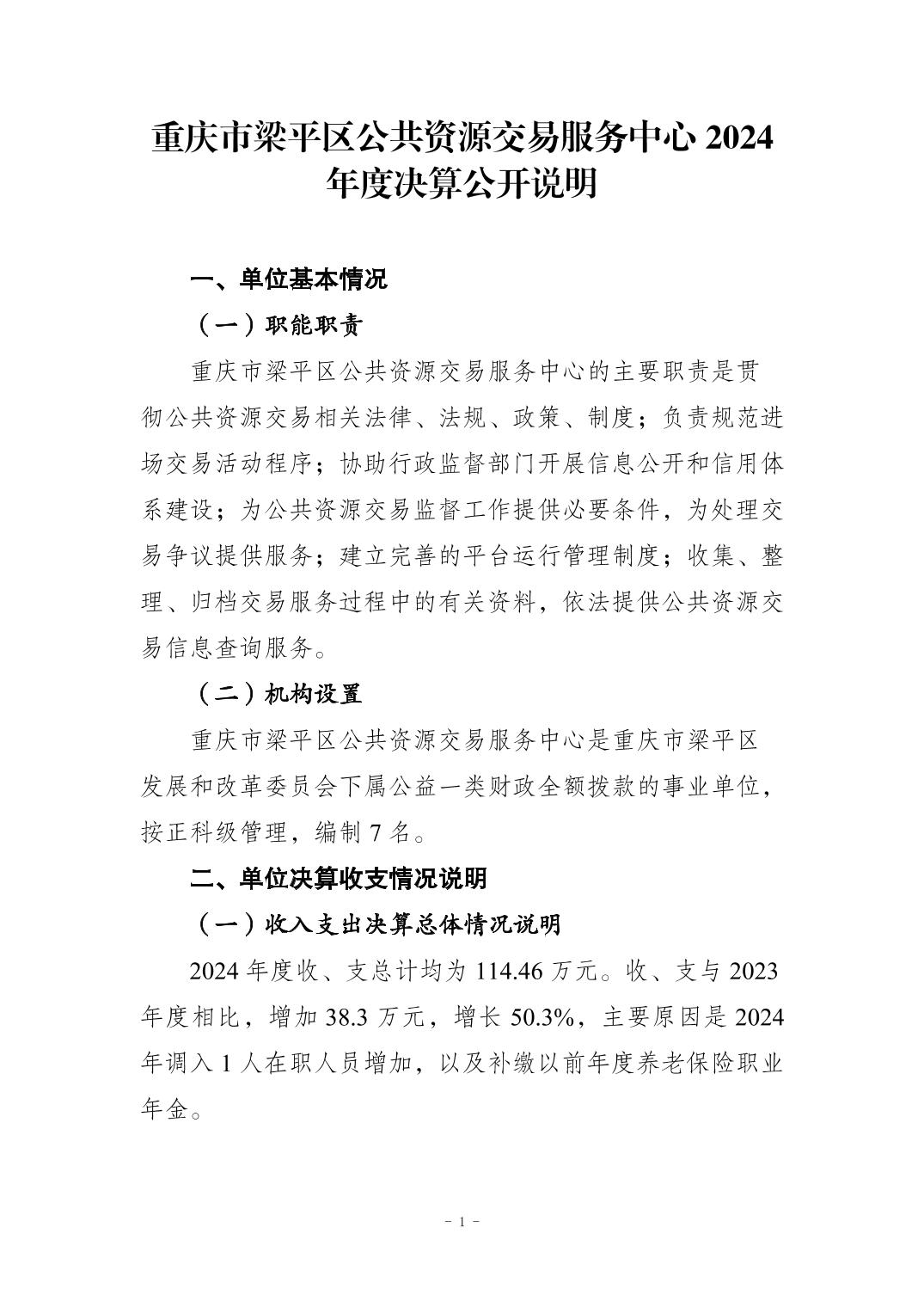 標題 重慶市梁平區公共資源交易服務中心2024年度決算公開說明及報表