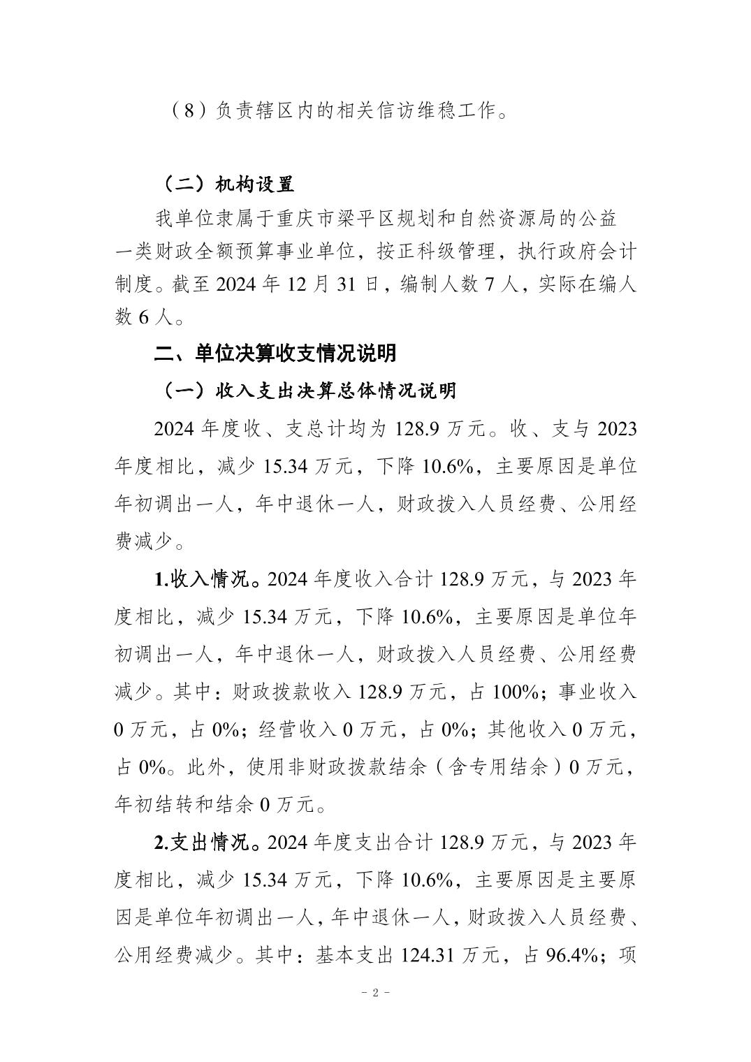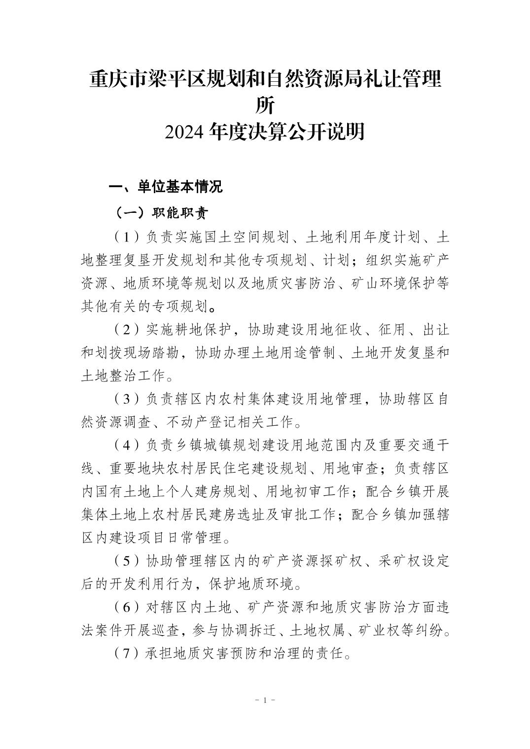 標題 重慶市梁平區(qū)規(guī)劃和自然資源局禮讓管理所2024年度決算公開說明
