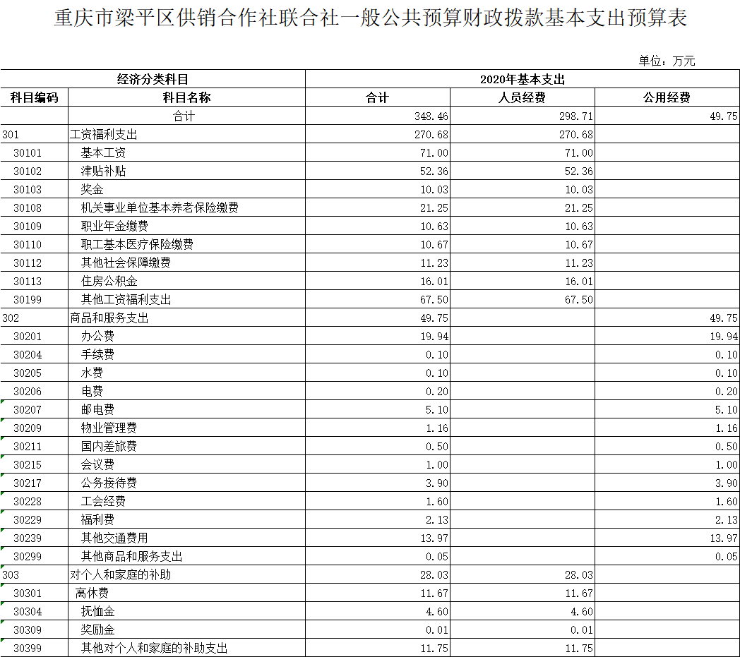 標題 重慶市梁平區供銷合作社聯合社2020年部門預算情況說明