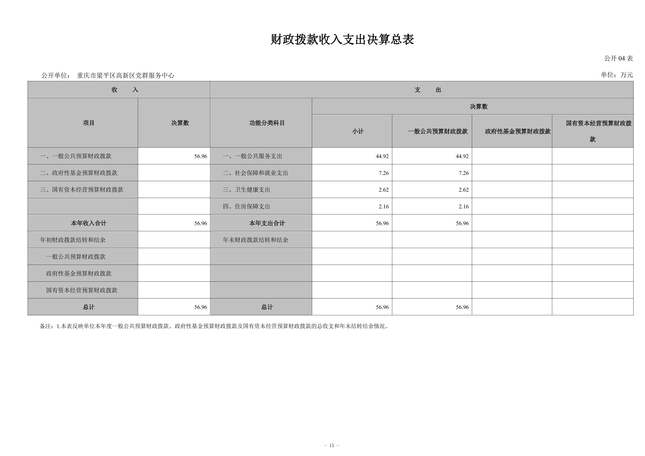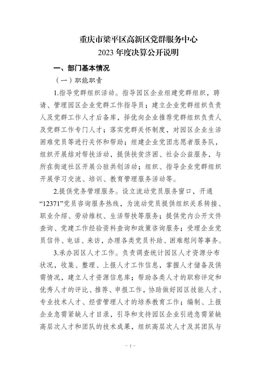 標題 重慶市梁平區(qū)高新區(qū)黨群服務中心 2023年度決算公開說明