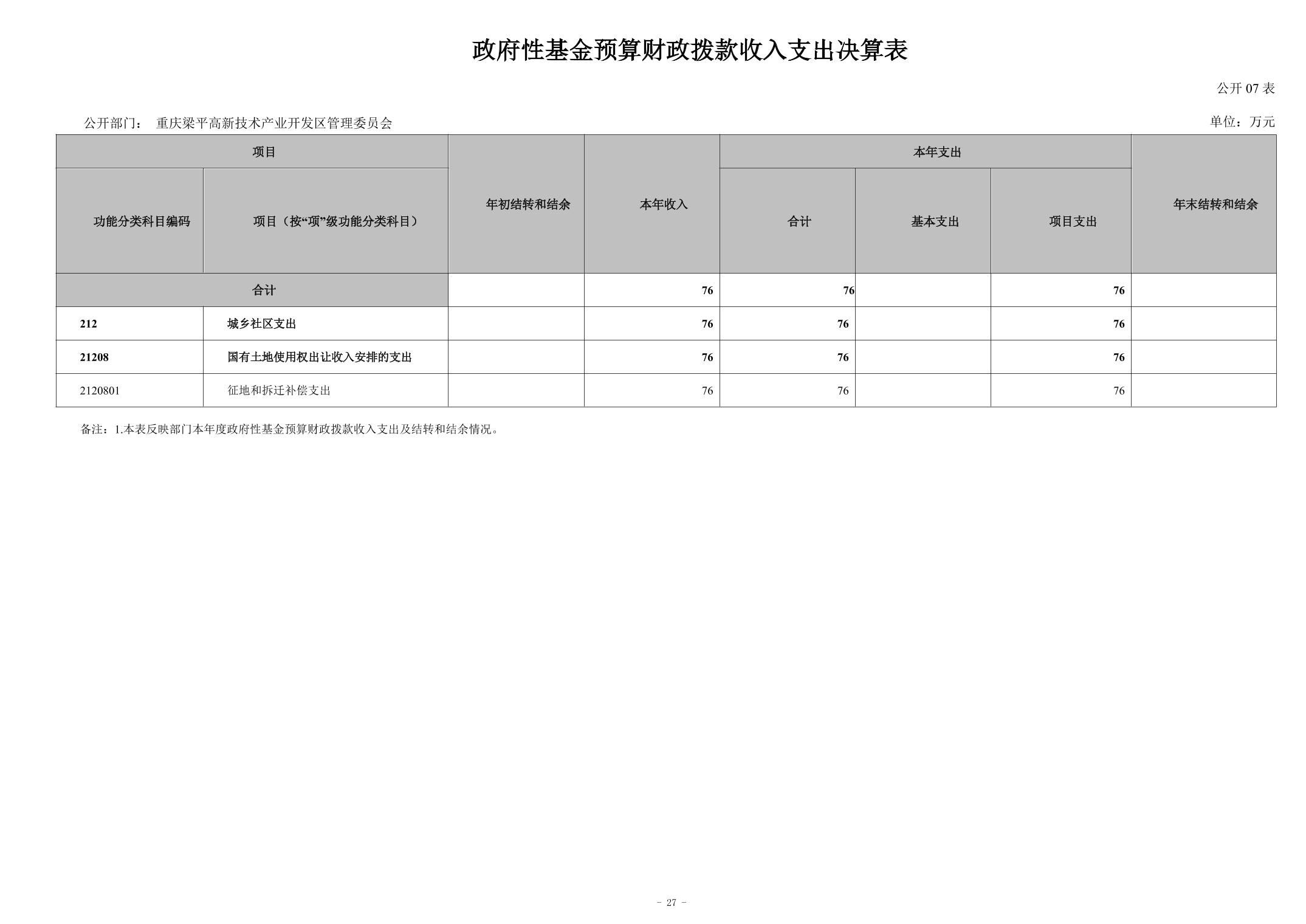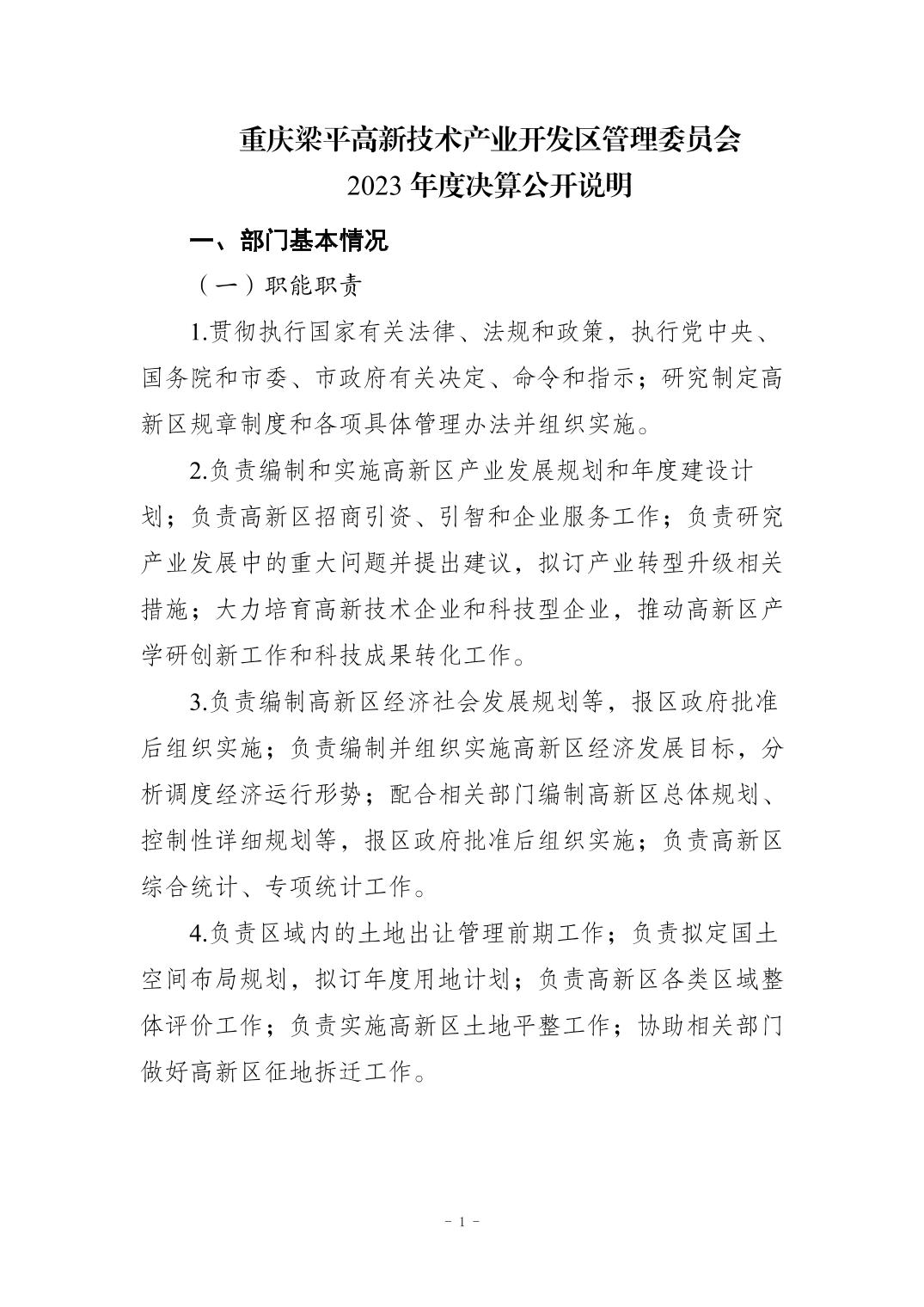| 標題 | 重慶梁平高新技術產業開發區管理委員會決算公開說明 |
