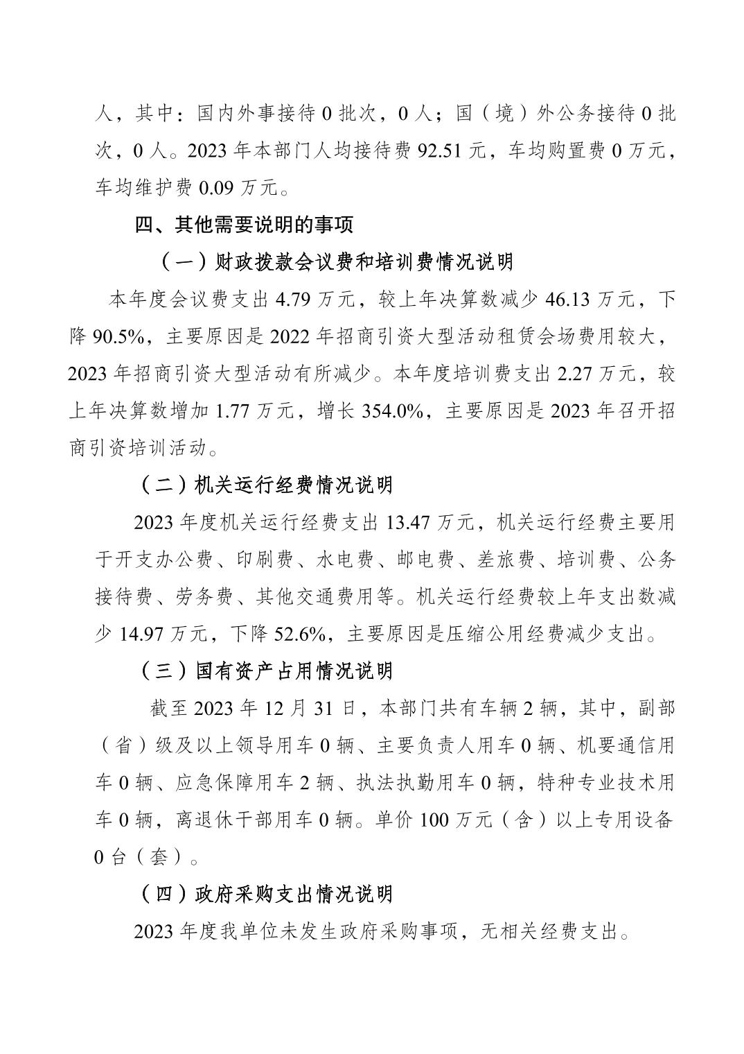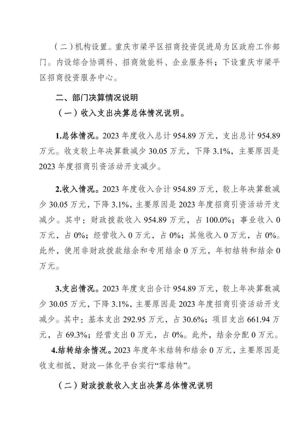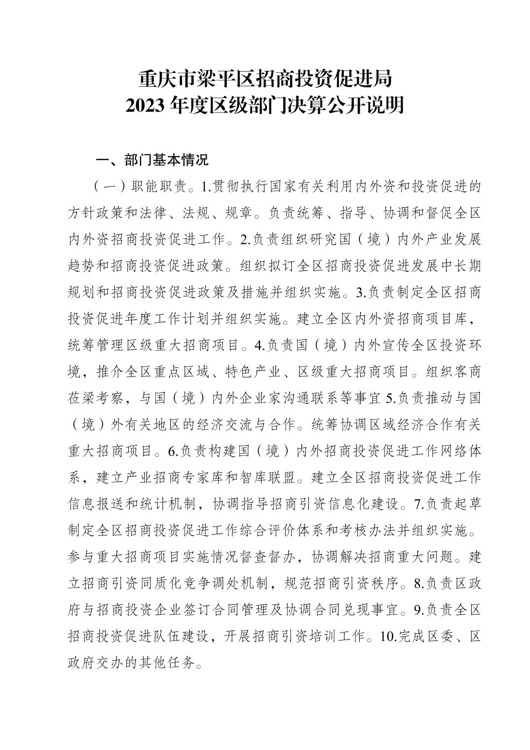 標題 重慶市梁平區招商投資促進局2023年度區級決算公開說明