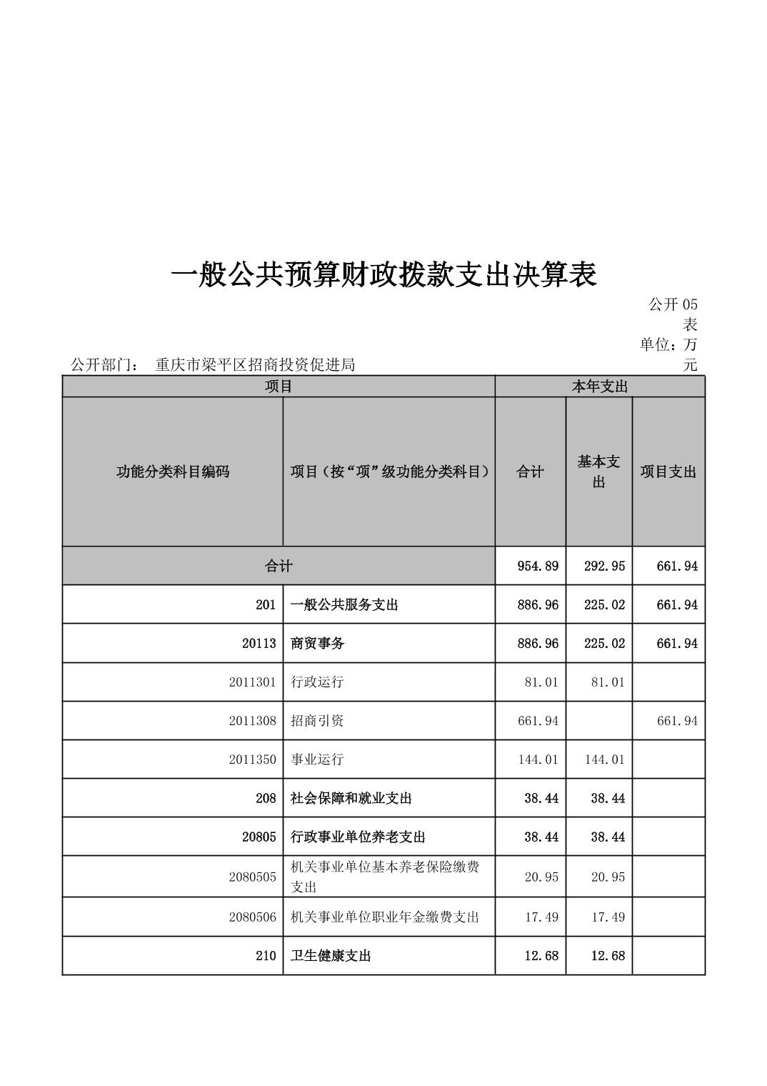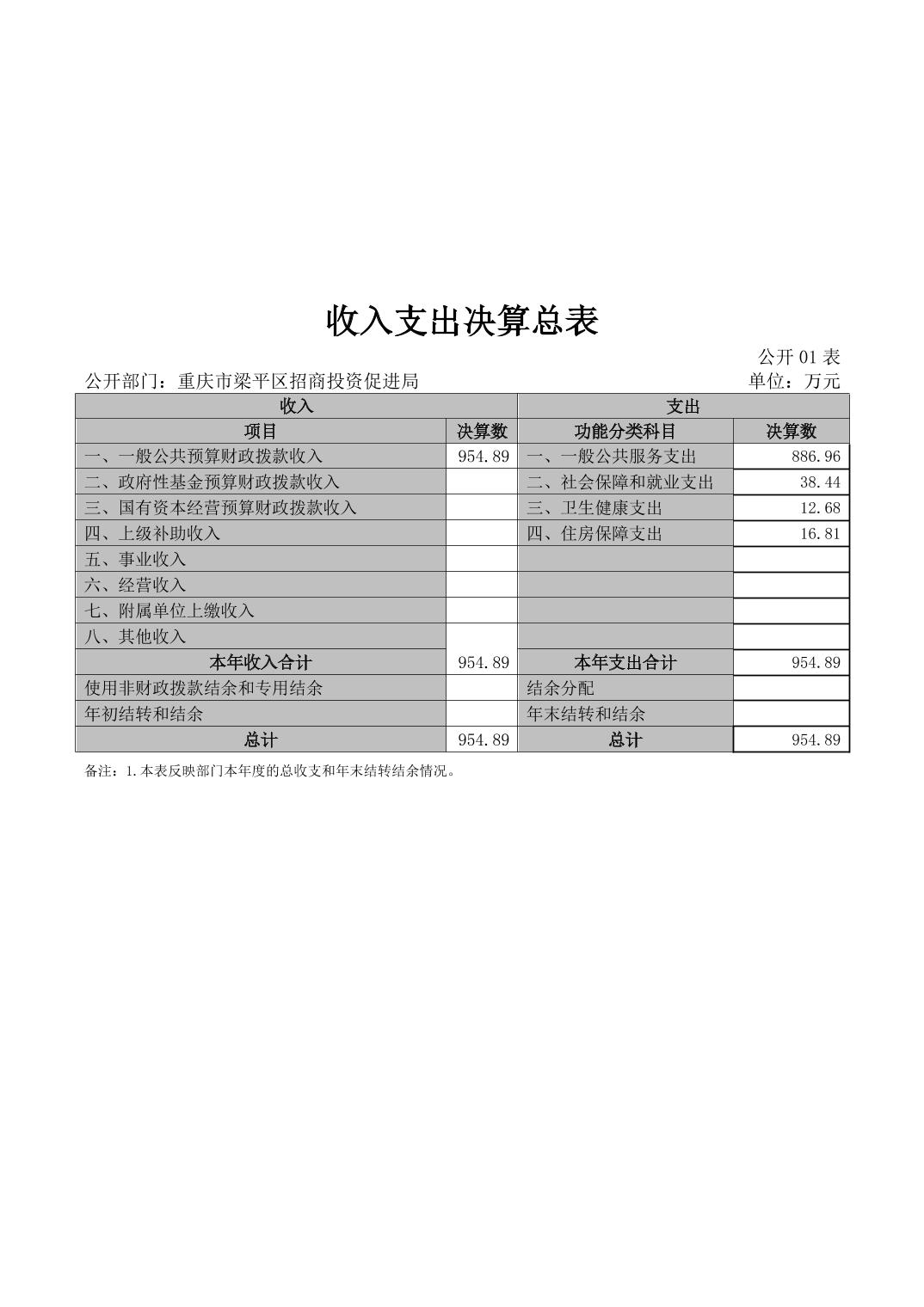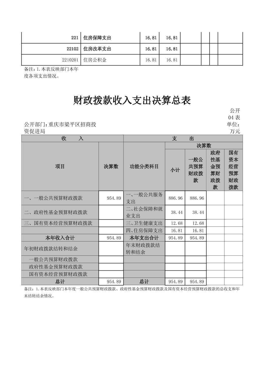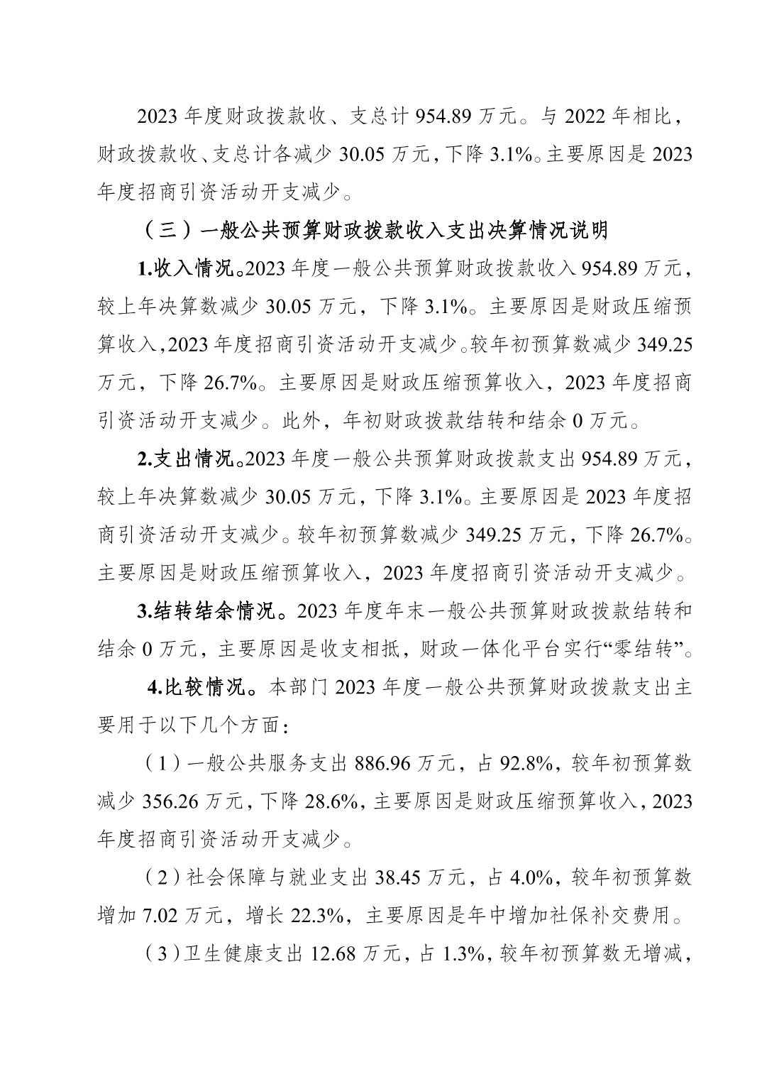 標題 重慶市梁平區招商投資促進局2023年度區級決算公開說明