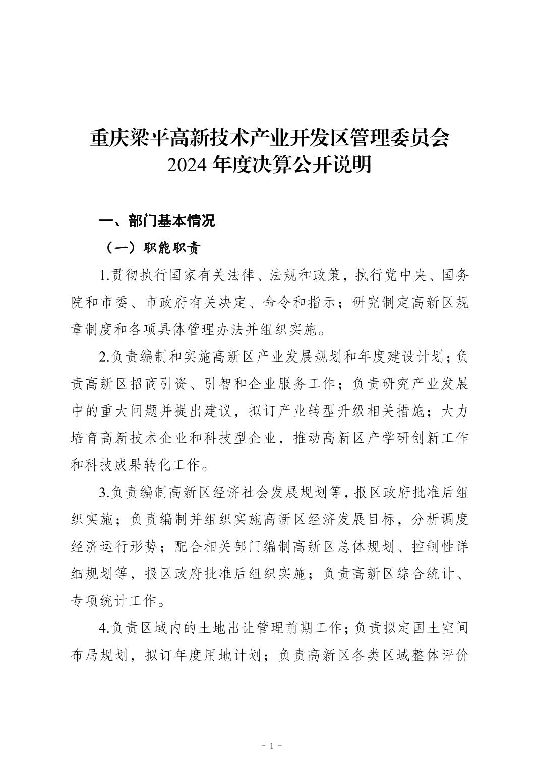 | 標題 | 重慶梁平高新技術產業開發區管理委員會 2024年度決算公開說明 |