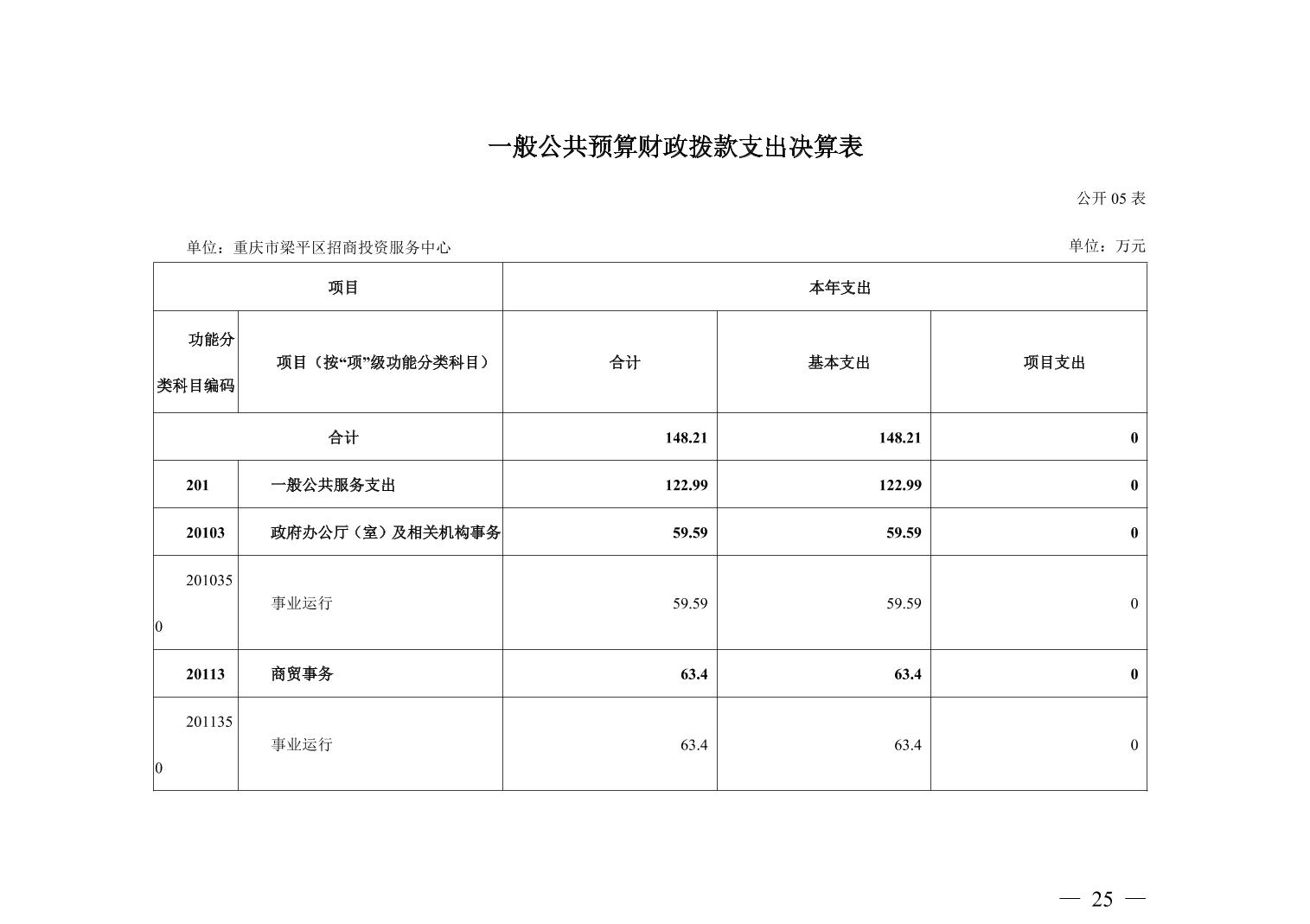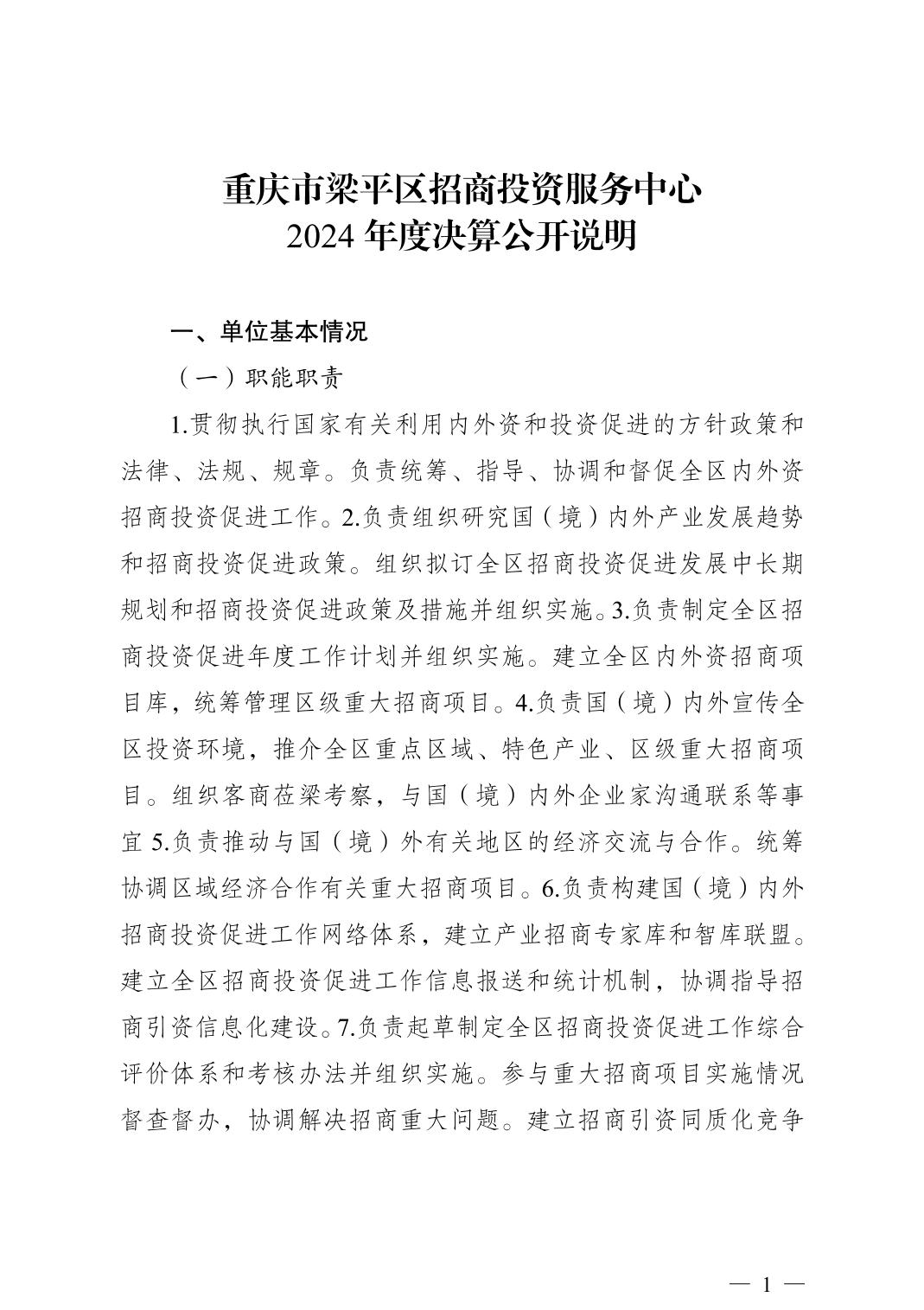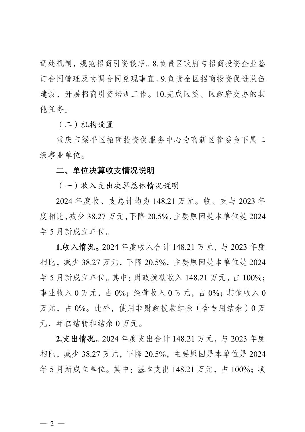 標題 重慶市梁平區招商投資服務中心 2024年度決算公開說明