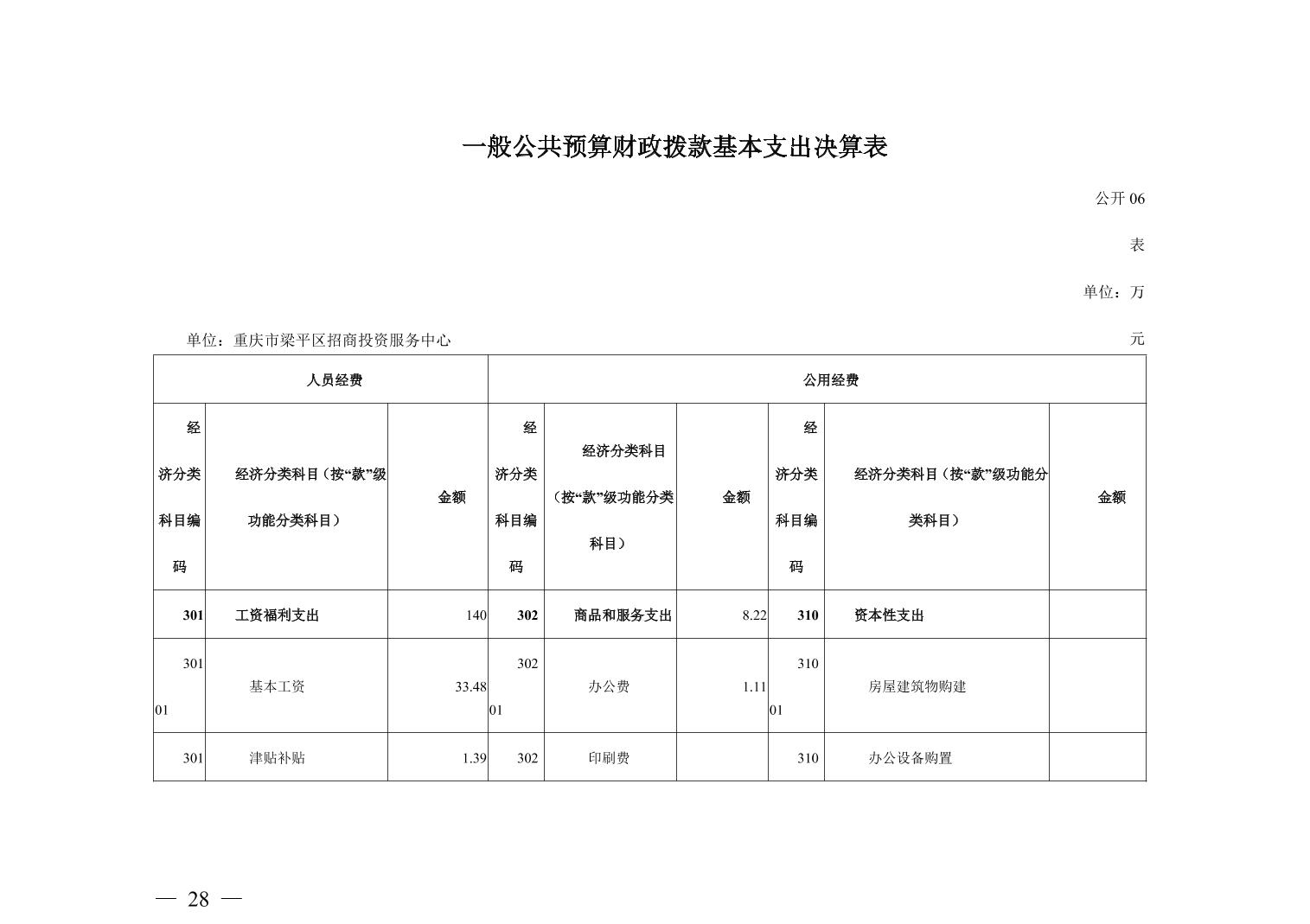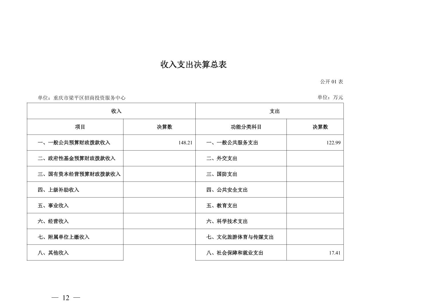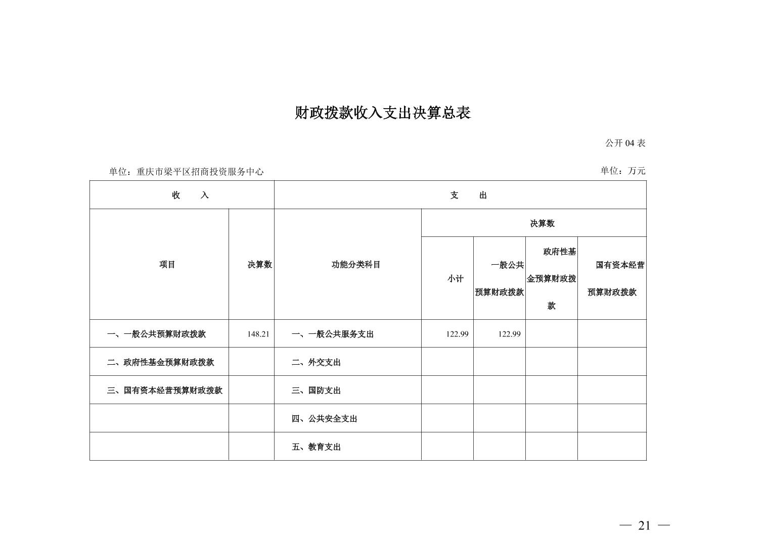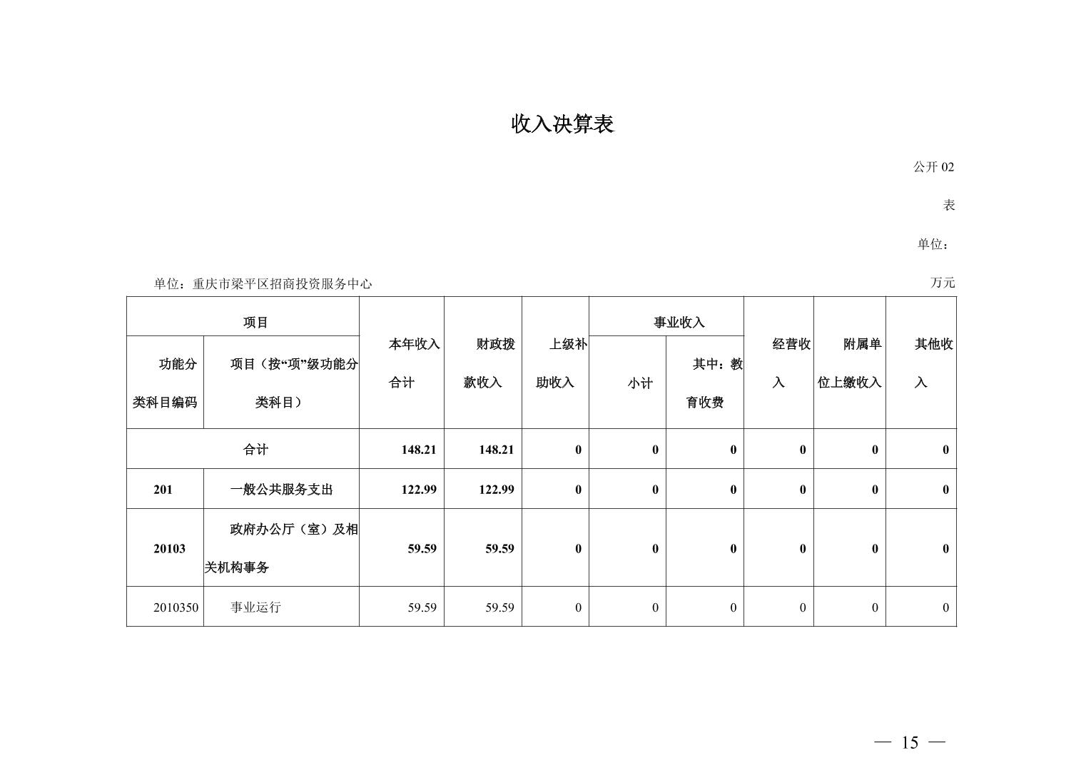 標題 重慶市梁平區招商投資服務中心 2024年度決算公開說明