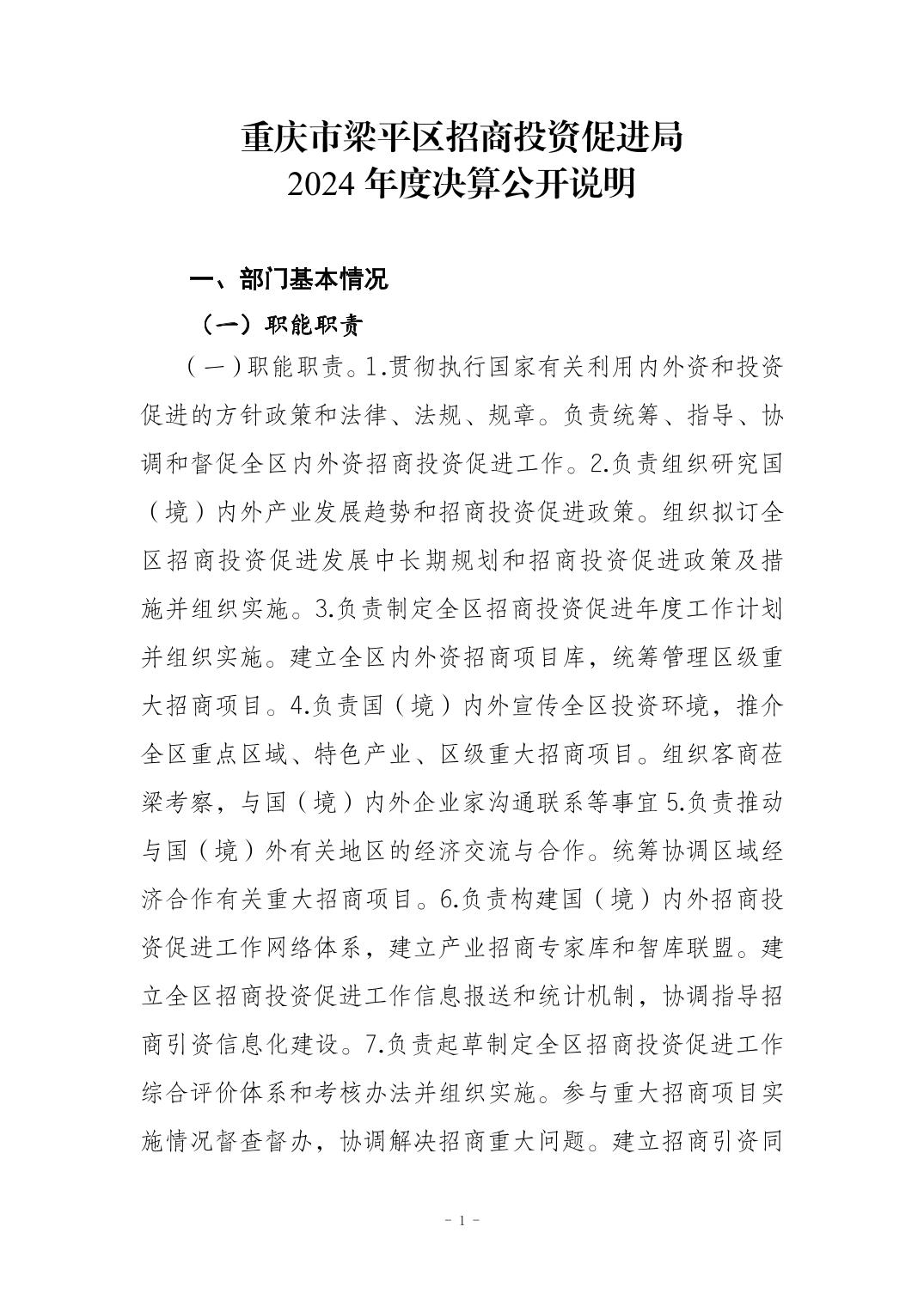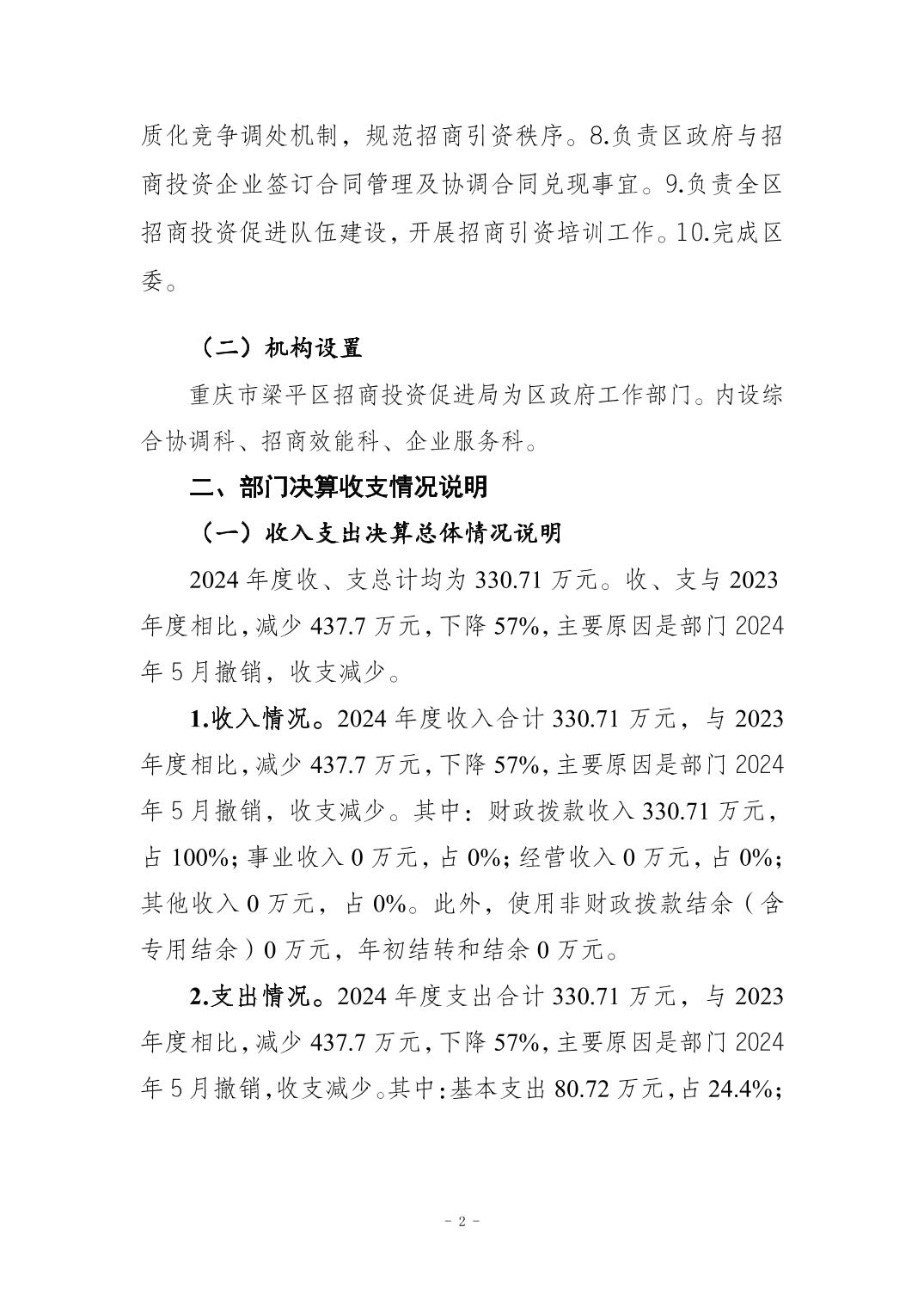 標(biāo)題 重慶市梁平區(qū)招商投資促進(jìn)局 2024 年度決算公開(kāi)說(shuō)明