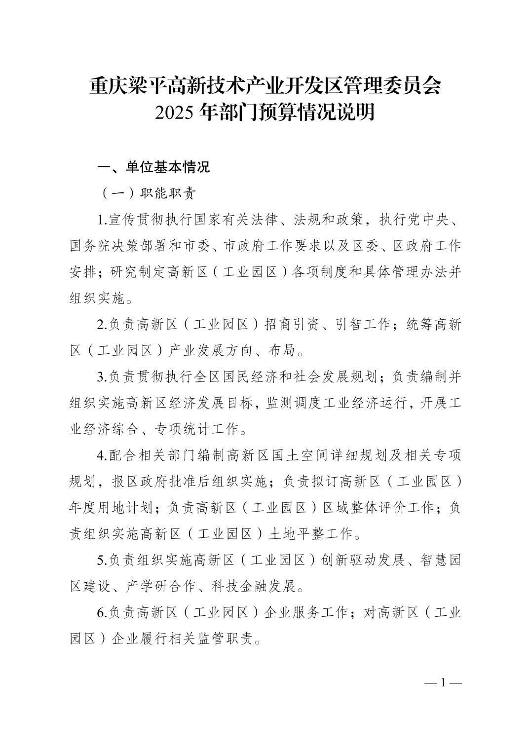 | 標題 | 重慶梁平高新技術產業開發區管理委員會 2025年部門預算情況說明 |
