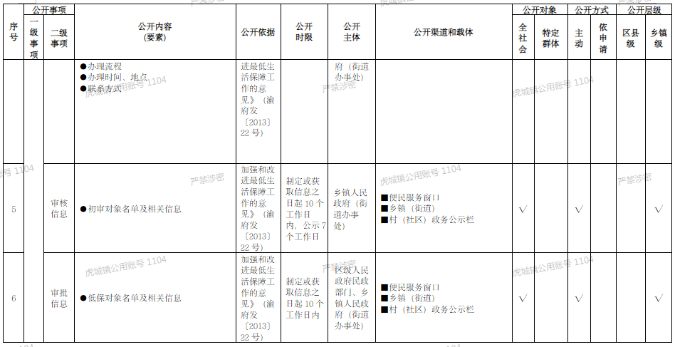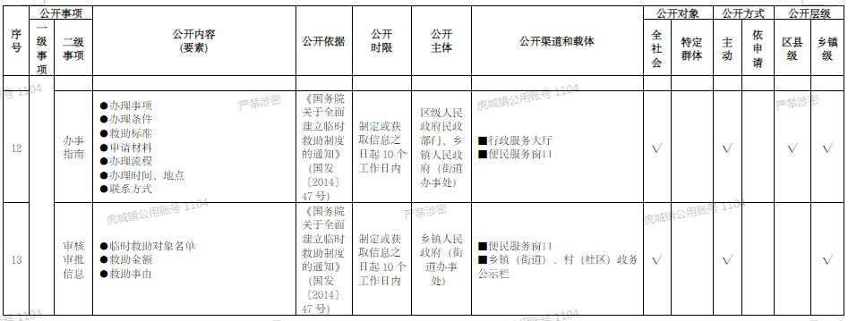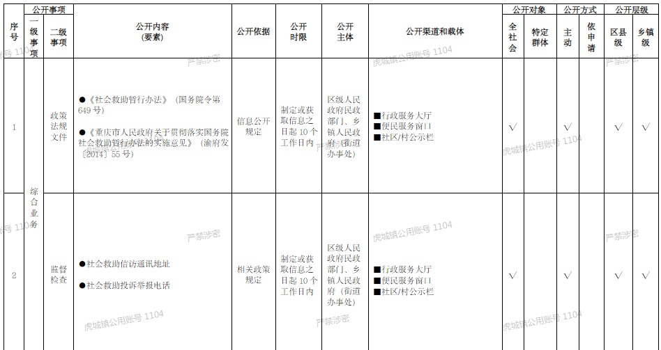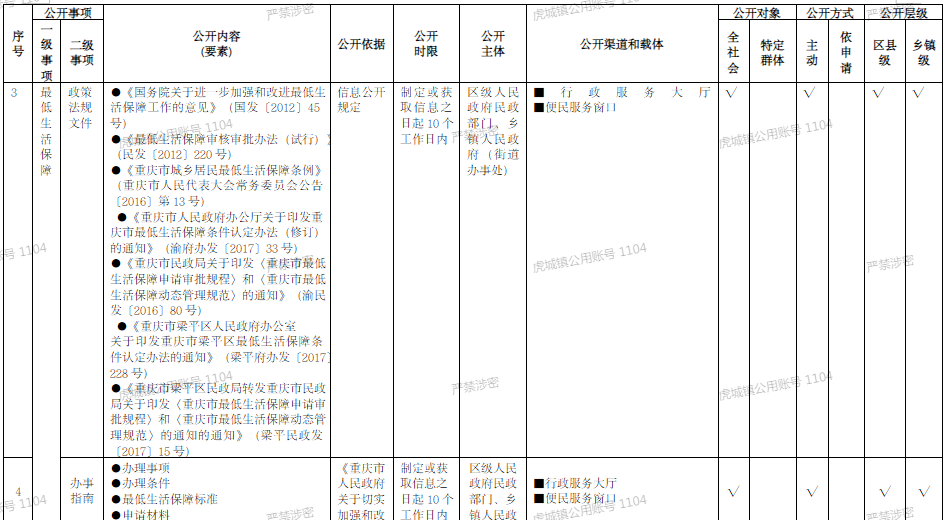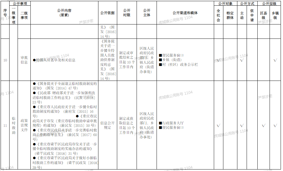重慶市梁平區鄉鎮(街道)社會救助領域基層政務公開標準目錄