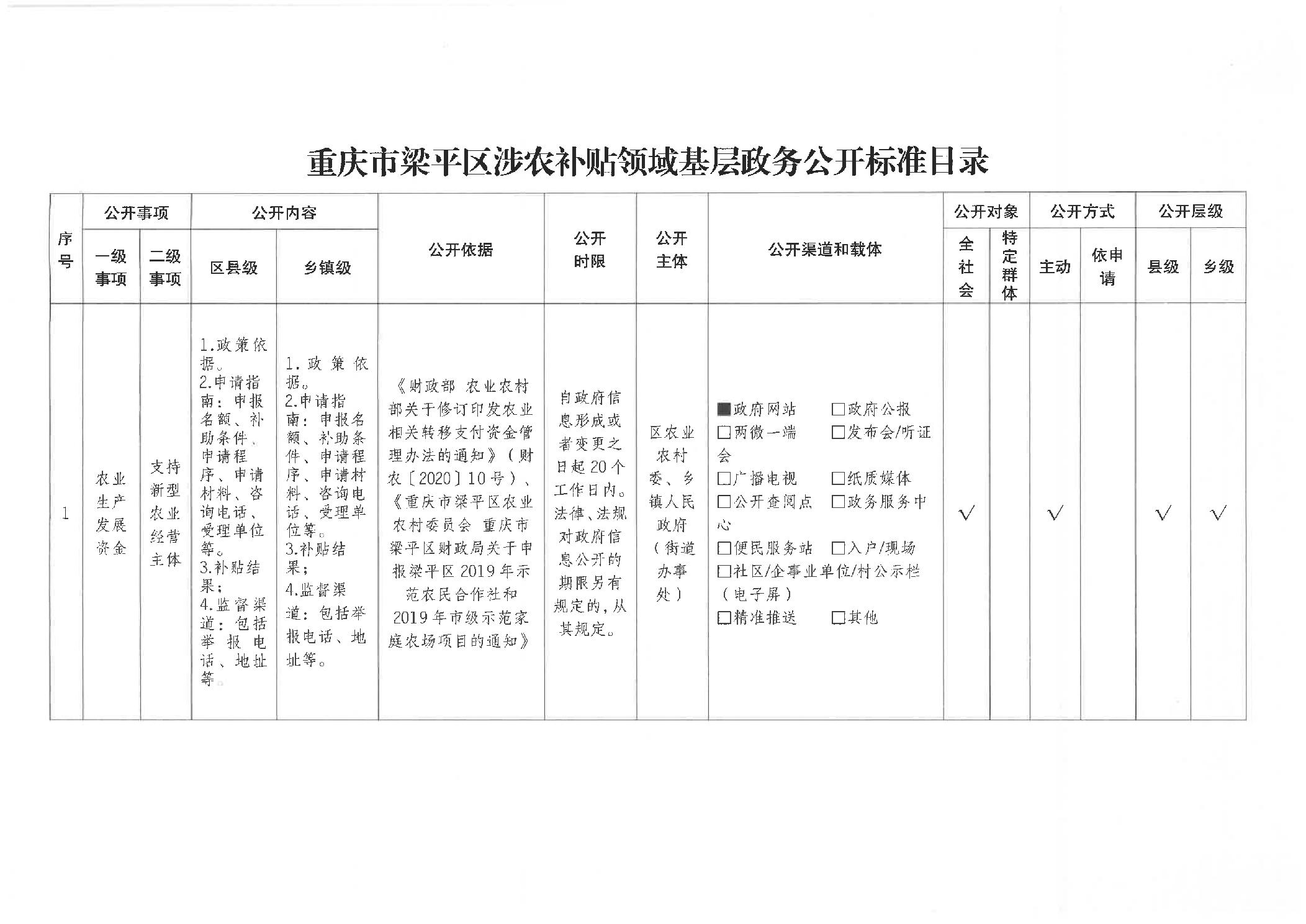 | 標題 | 重慶市梁平區回龍鎮涉農補貼領域基層政務公開標準目錄 | ||