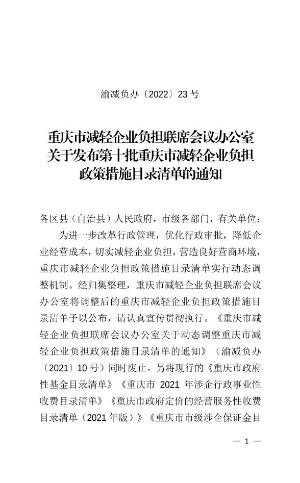 | 發文字號 | 渝減負辦〔2022〕23號 |