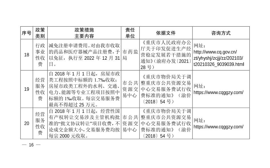 | 標題 | 重慶市減輕企業負擔聯席會議辦公室關于發布第十批重慶市減輕企業負擔政策措施目錄清單的通知 | ||