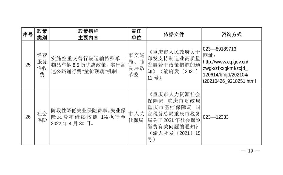| 標題 | 重慶市減輕企業負擔聯席會議辦公室關于發布第十批重慶市減輕企業負擔政策措施目錄清單的通知 |