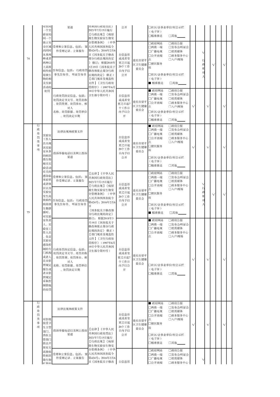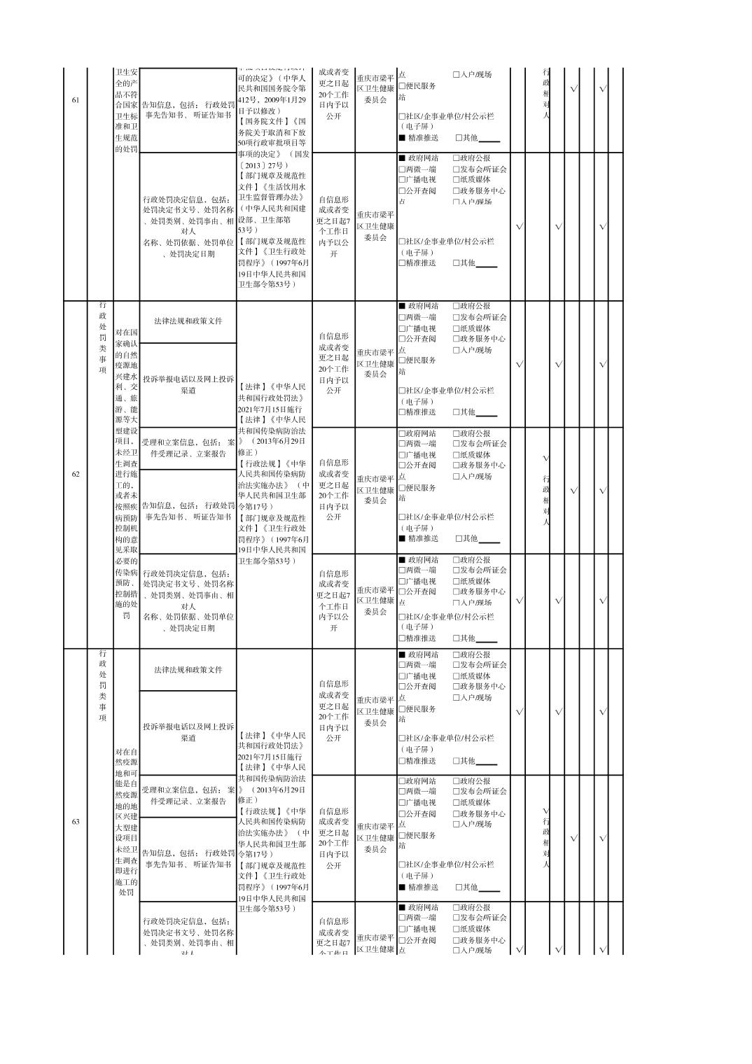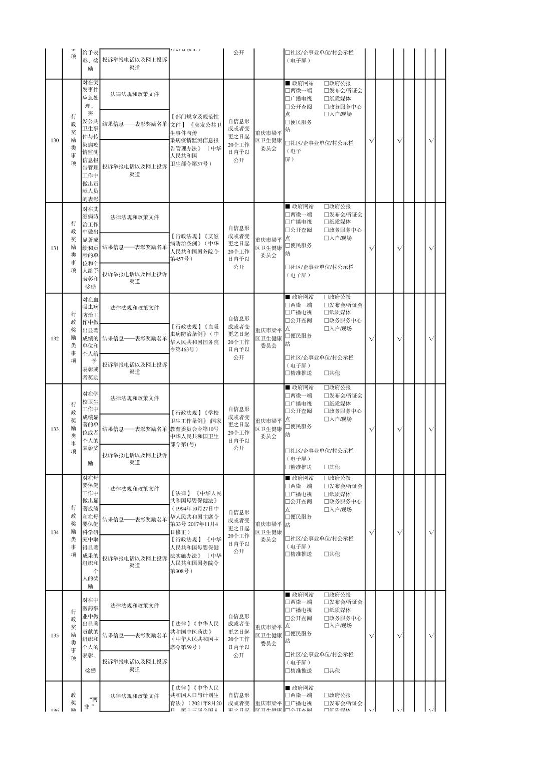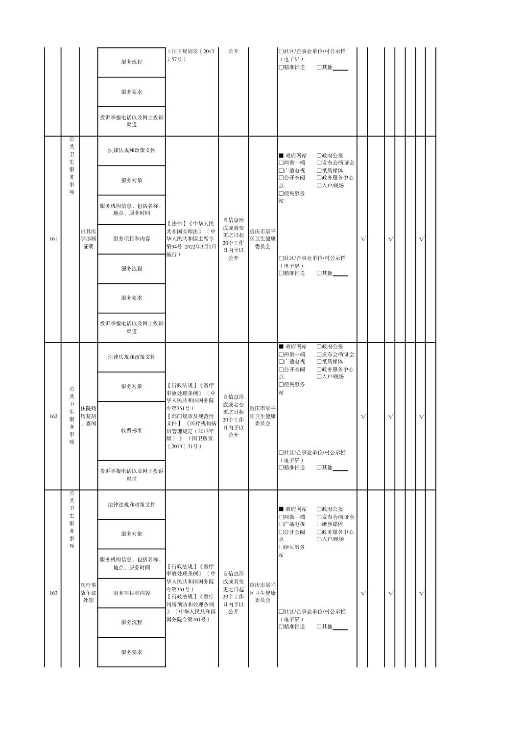 重慶市梁平區衛生健康領域基層政務公開標準目錄