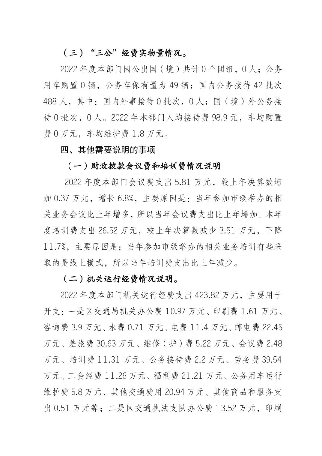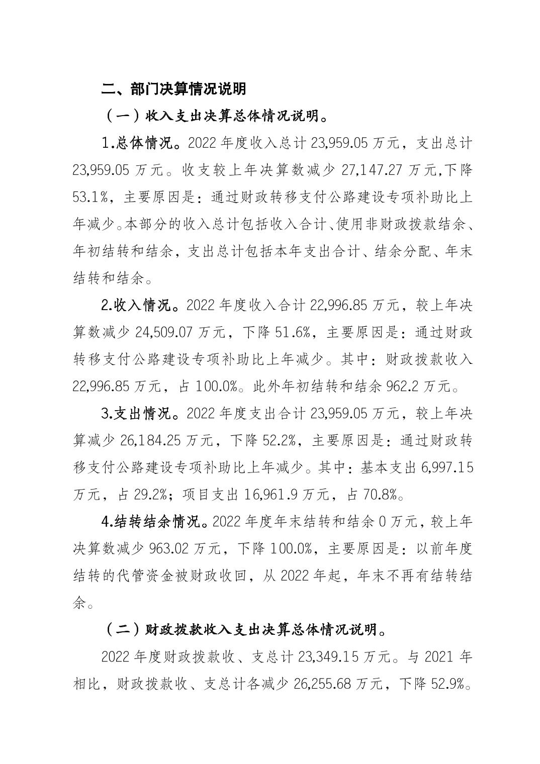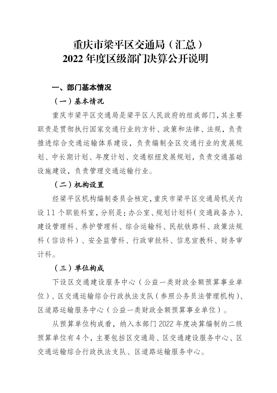 標題 重慶市梁平區(qū)交通局(匯總) 2022年度區(qū)級部門決算公開說明