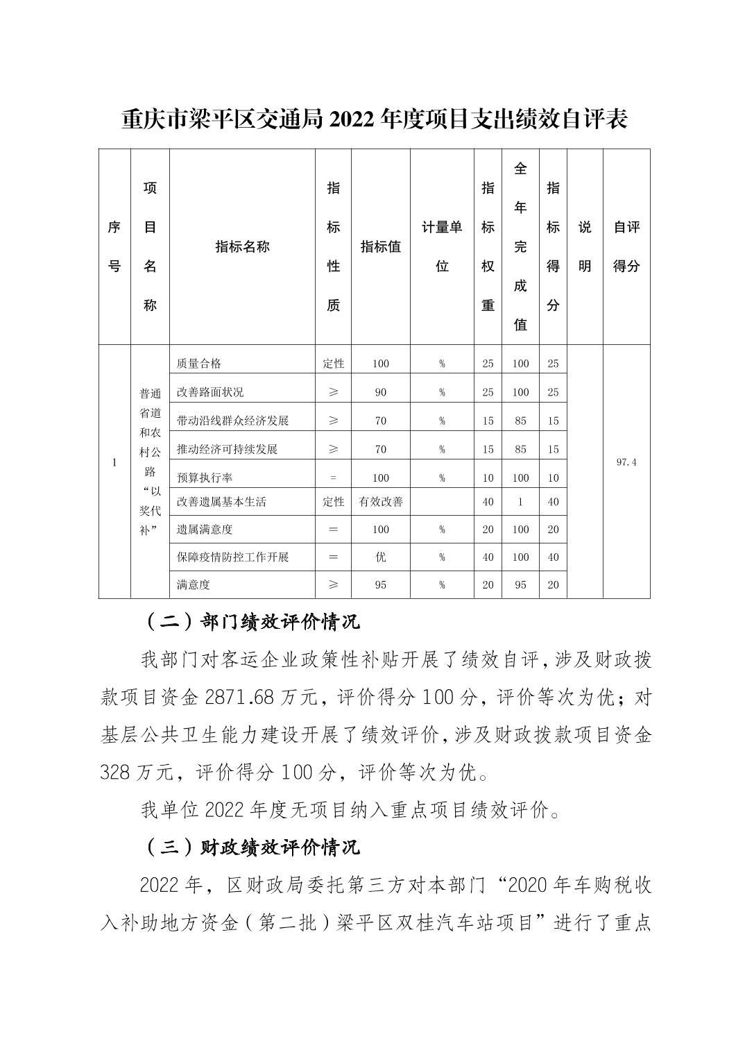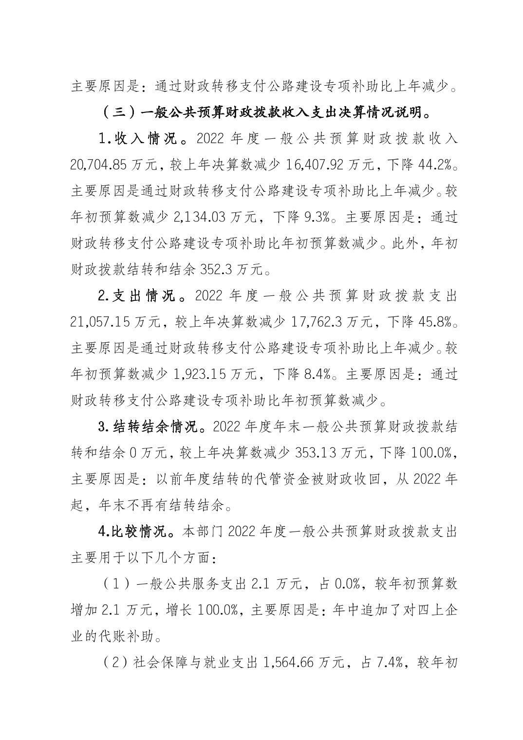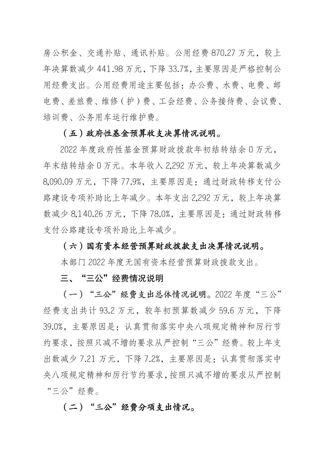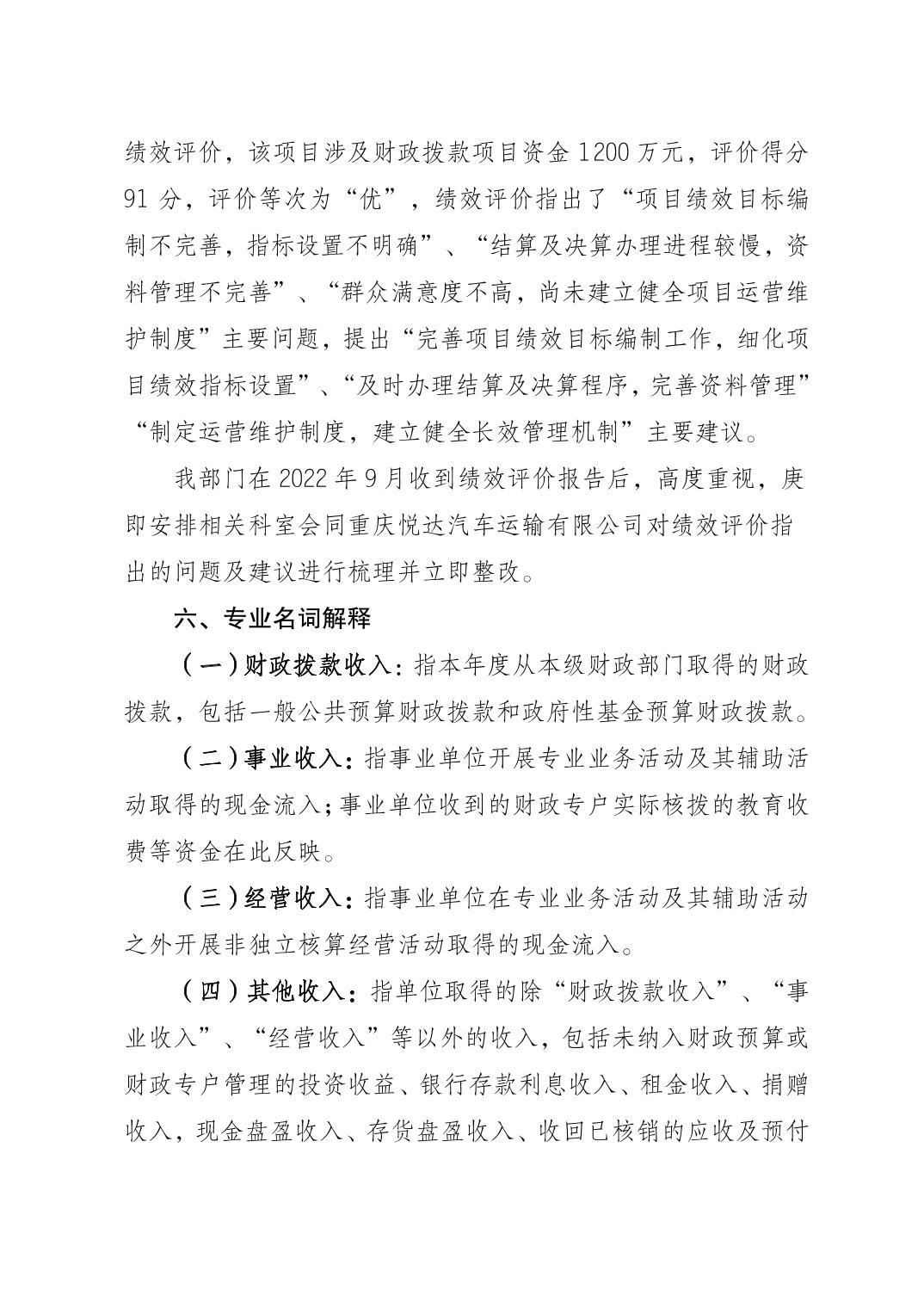 標題 重慶市梁平區(qū)交通局(匯總) 2022年度區(qū)級部門決算公開說明