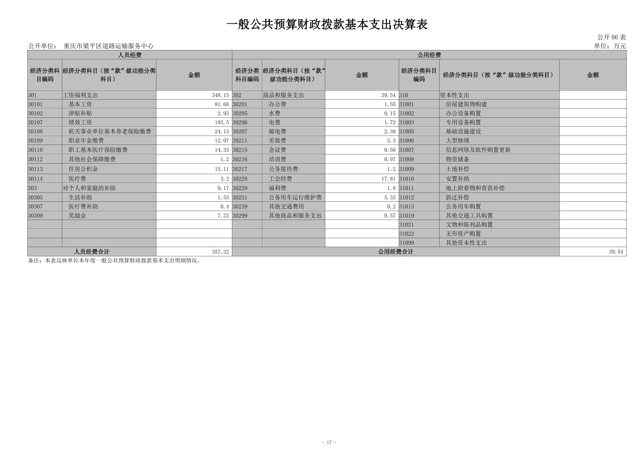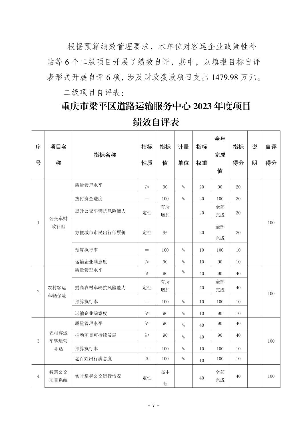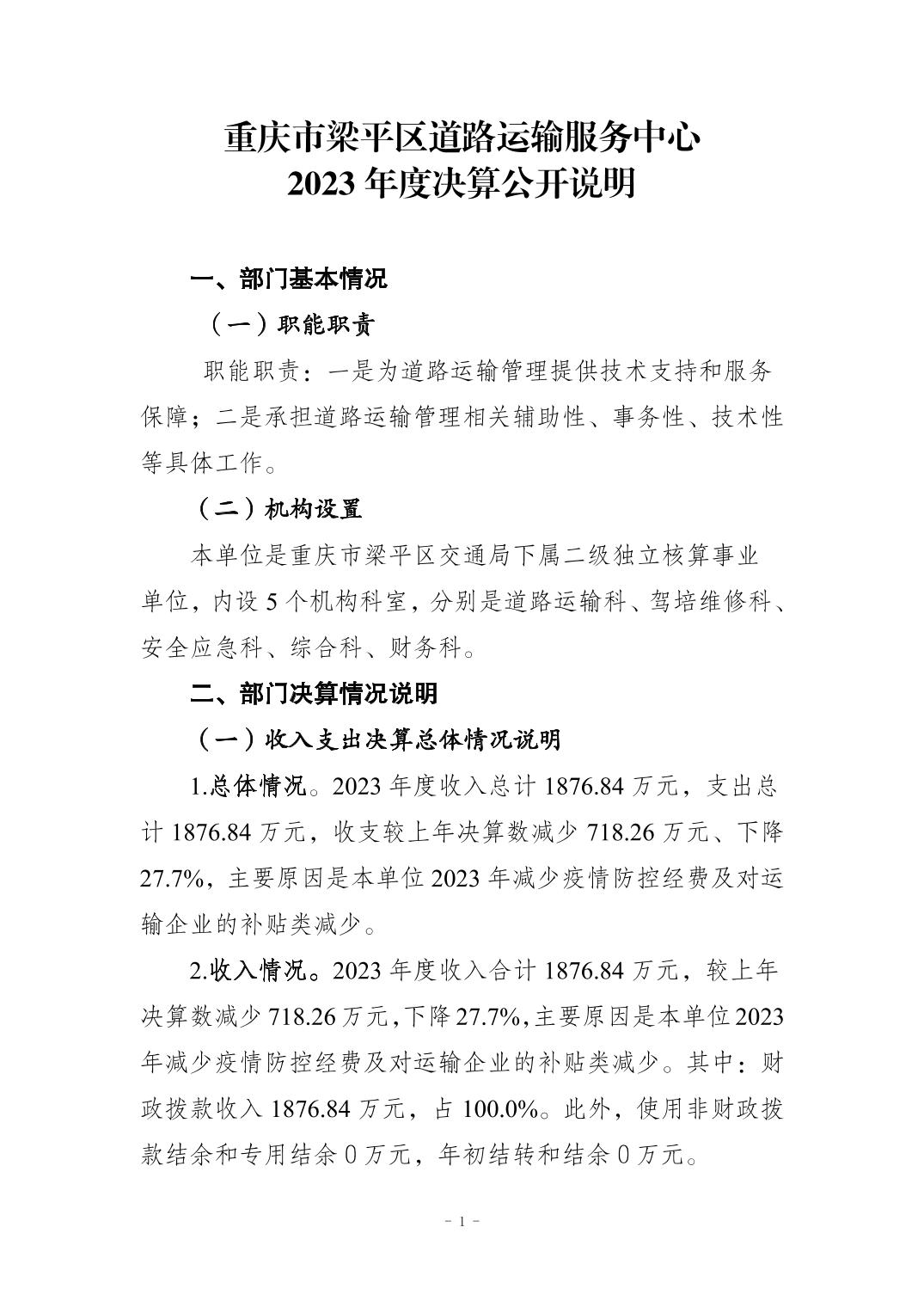 標題 重慶市梁平區道路運輸服務中心 2023年度決算公開說明
