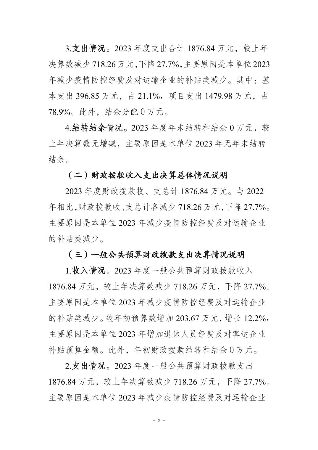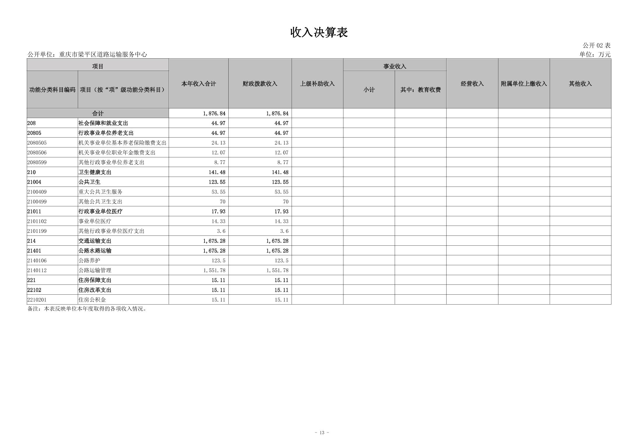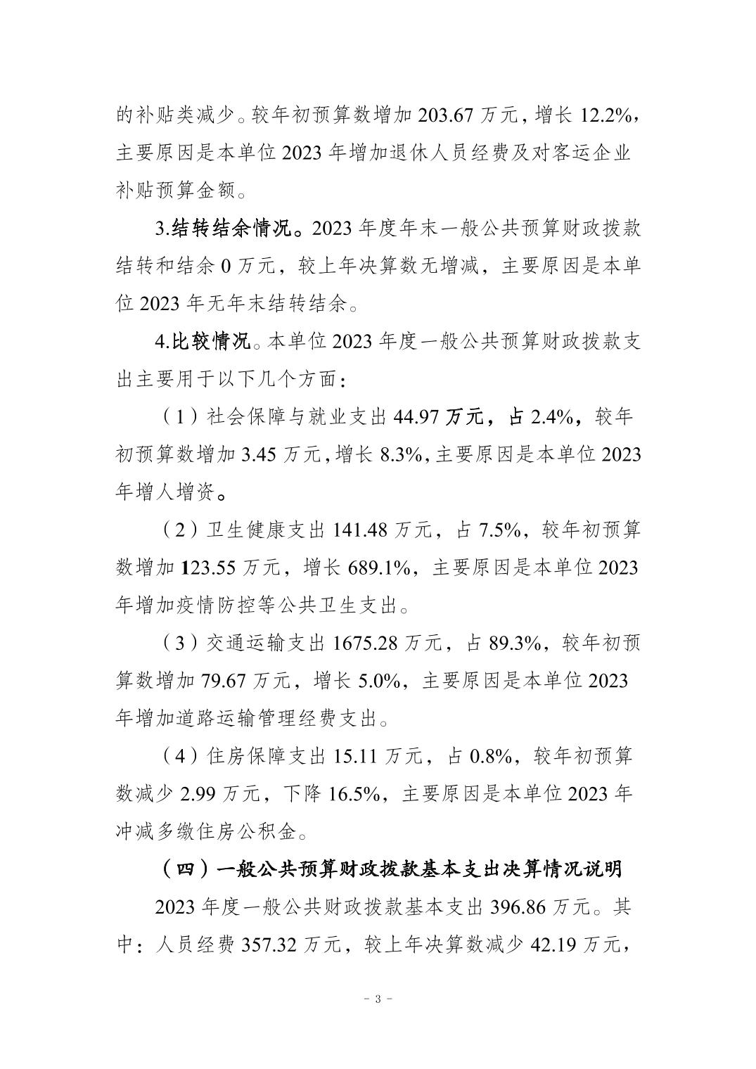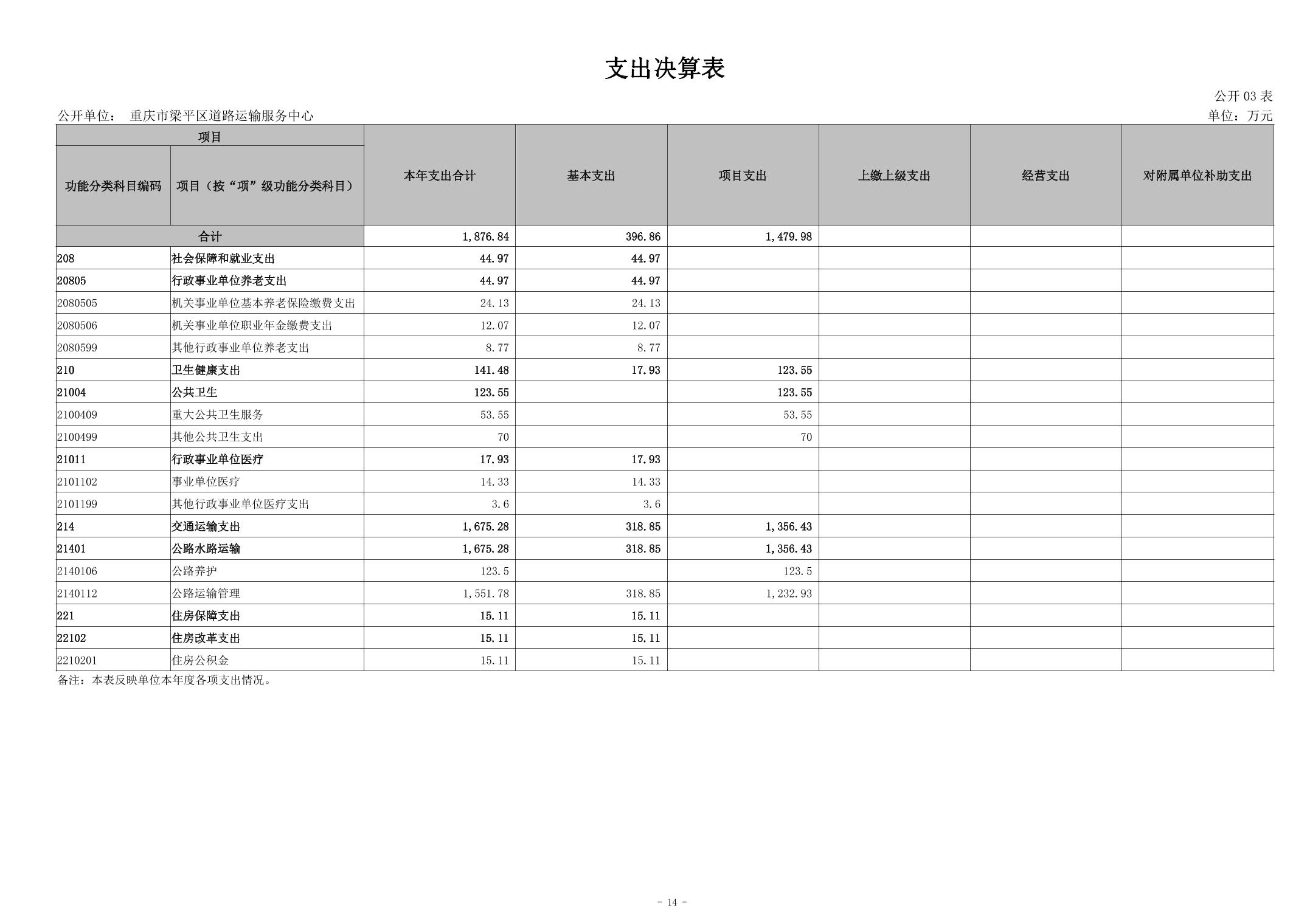 標題 重慶市梁平區道路運輸服務中心 2023年度決算公開說明