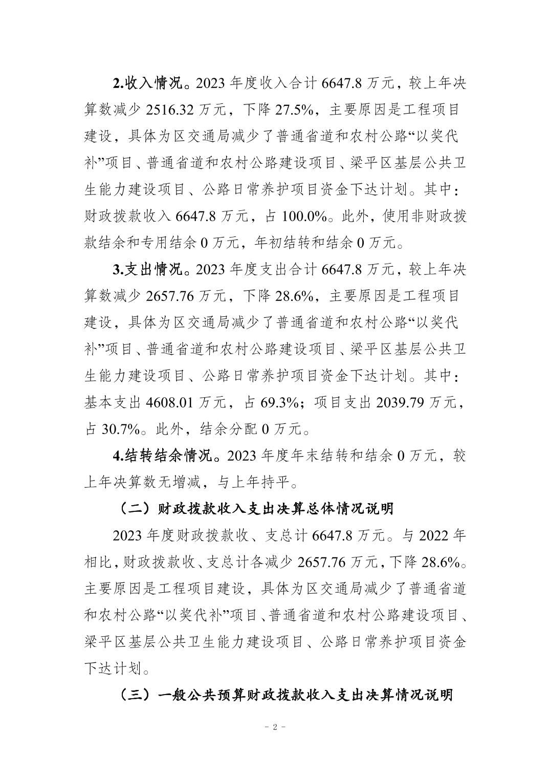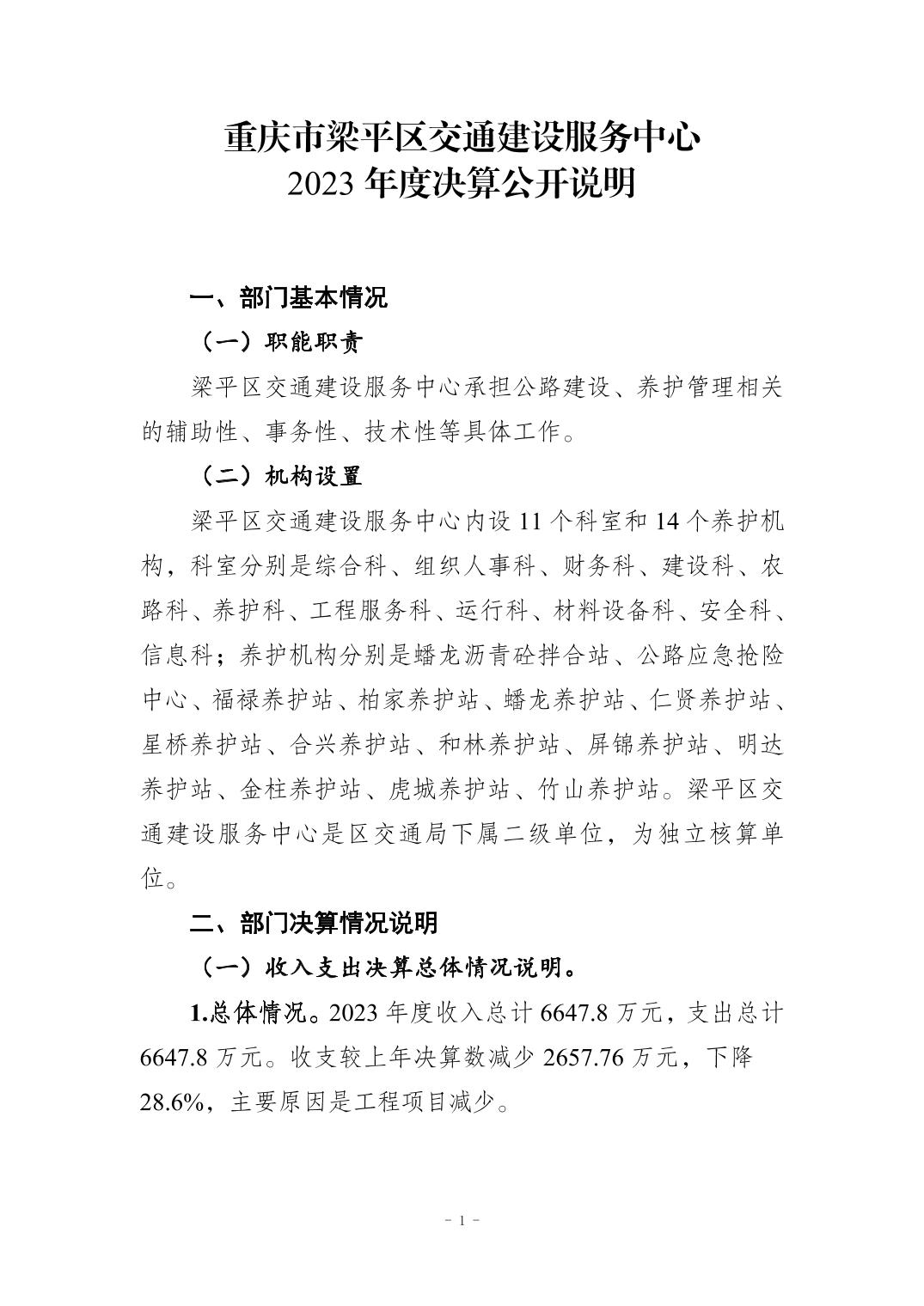 | 標題 | 重慶市梁平區交通建設服務中心2023年度決算公開說明 |