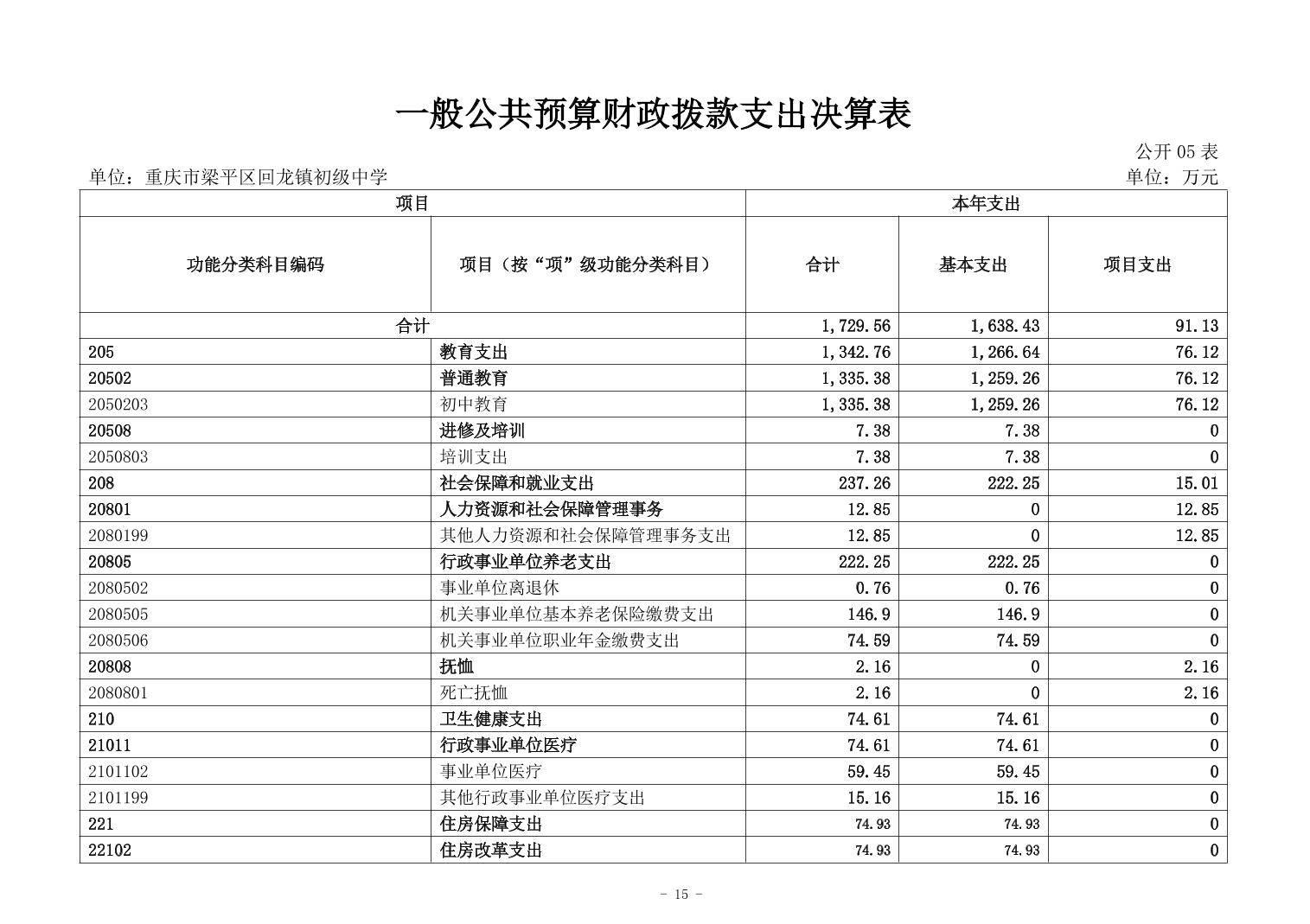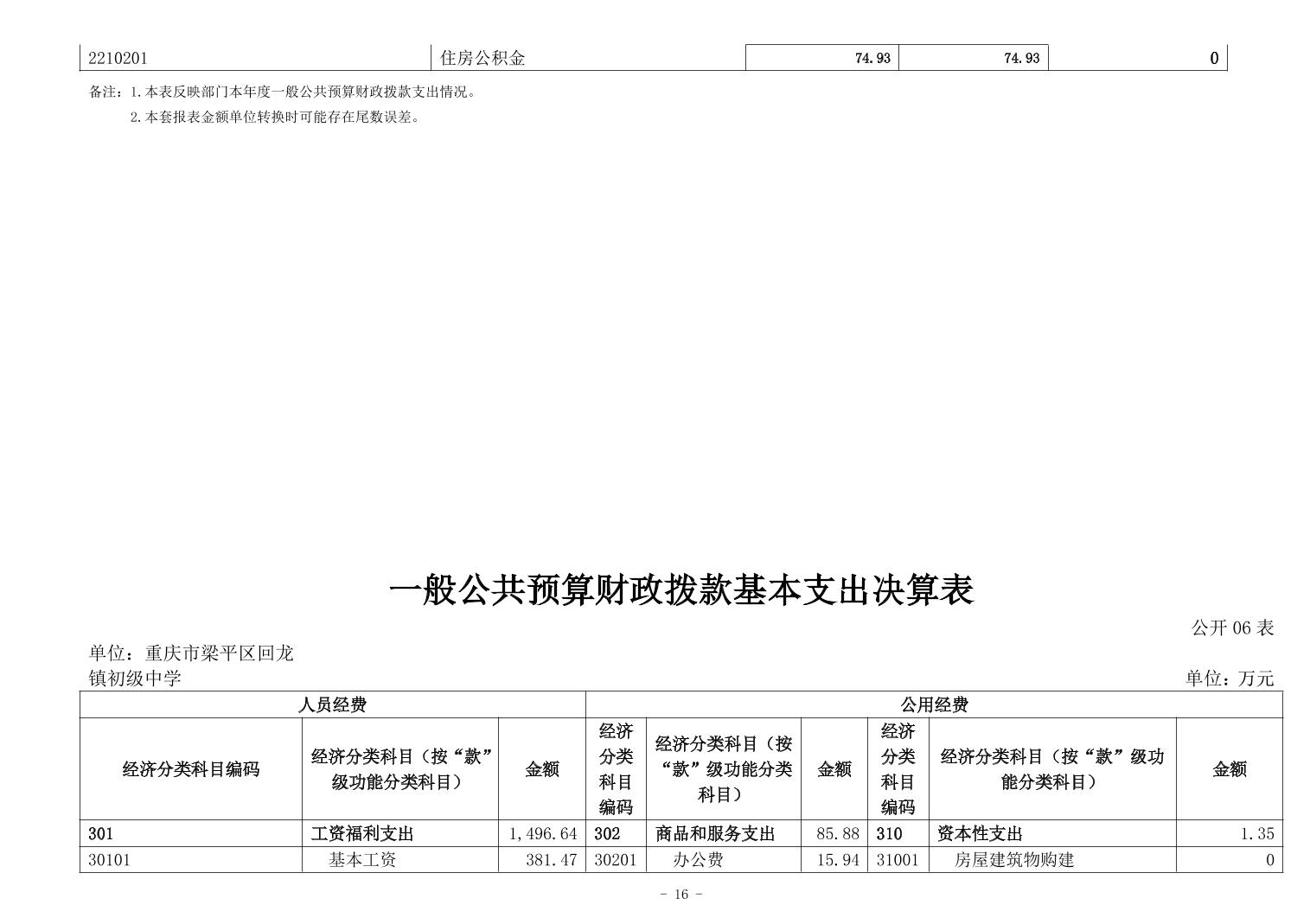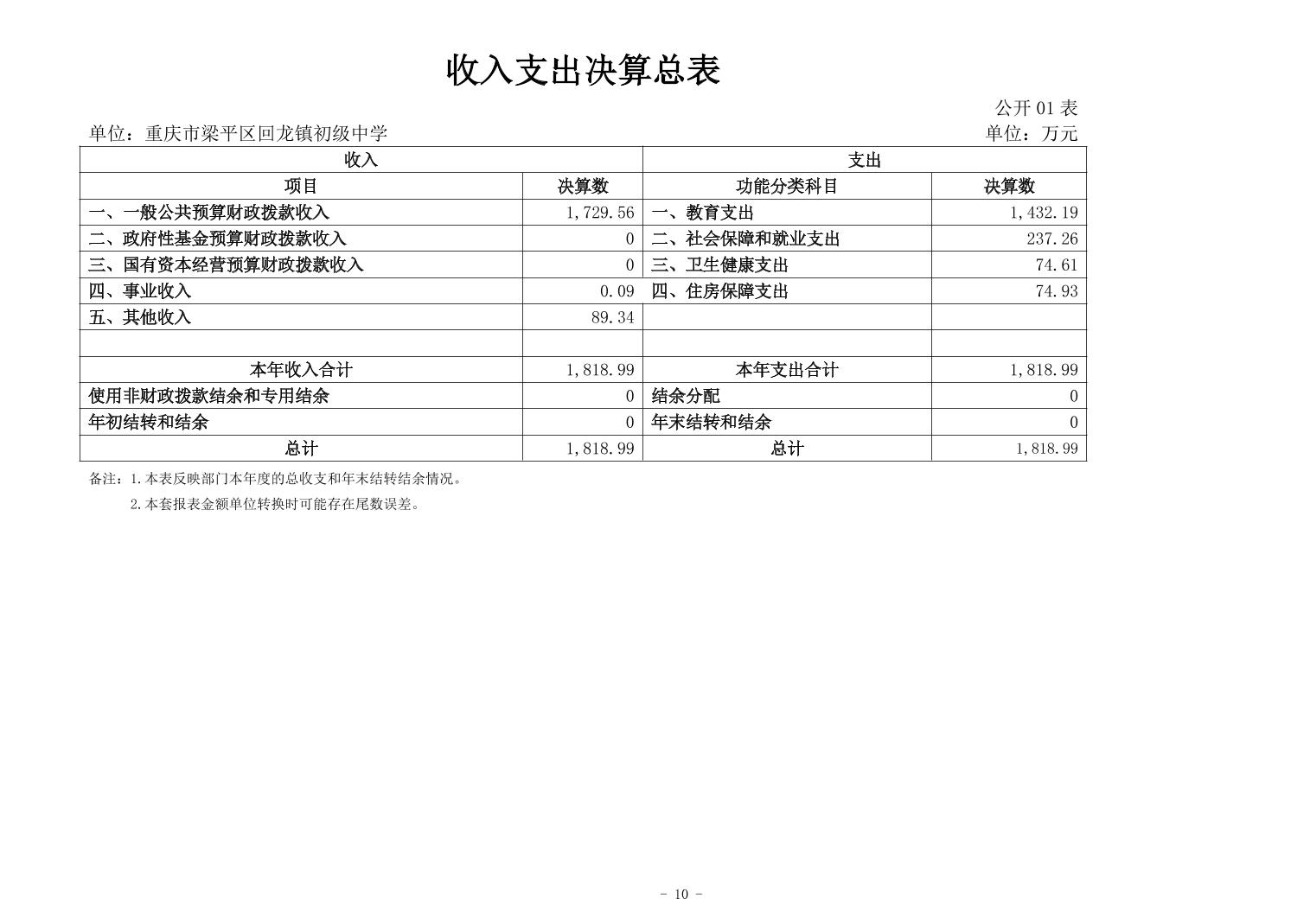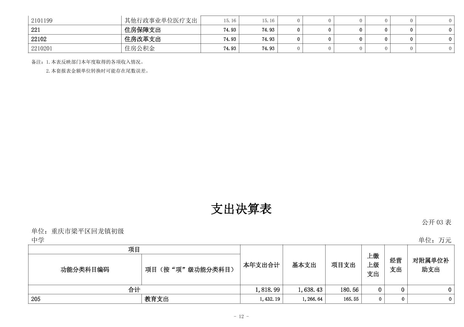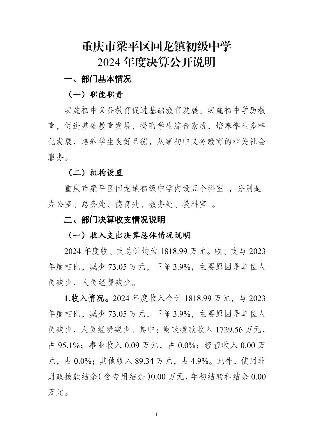 標題 重慶市梁平區回龍鎮初級中學2024年度決算公開說明