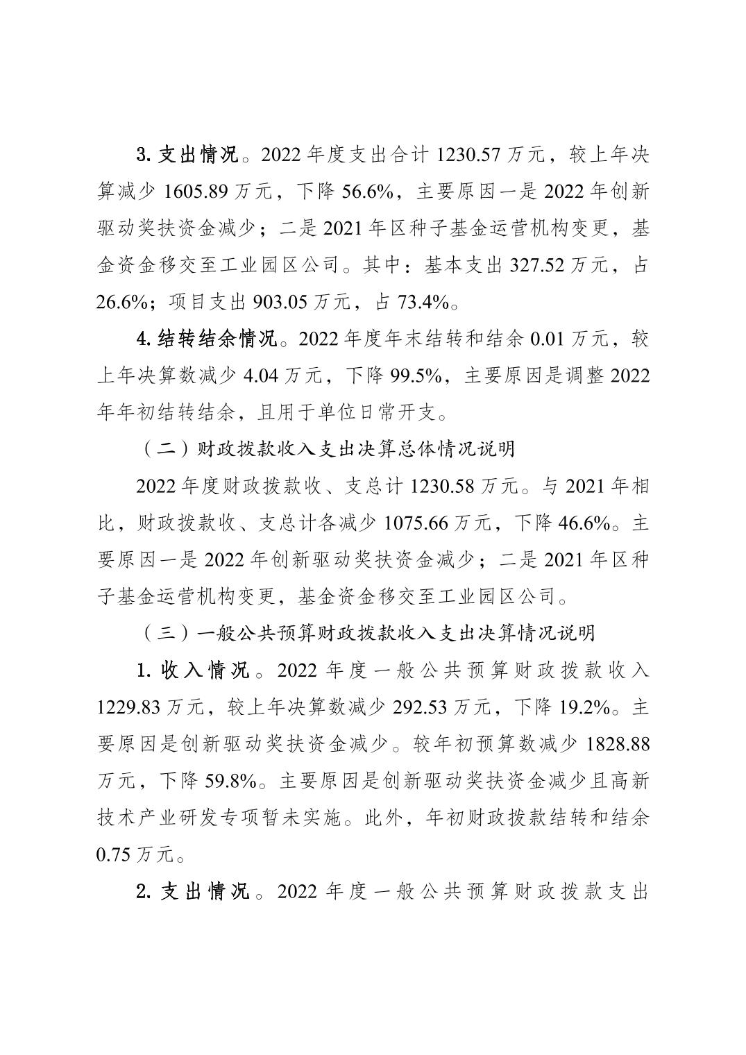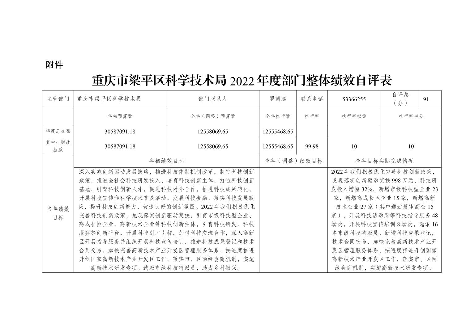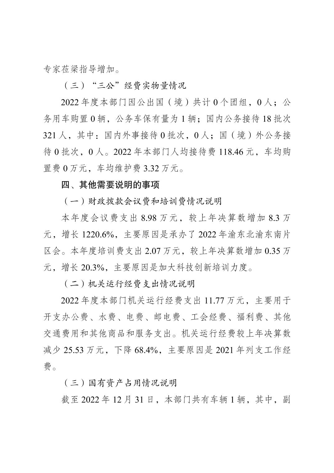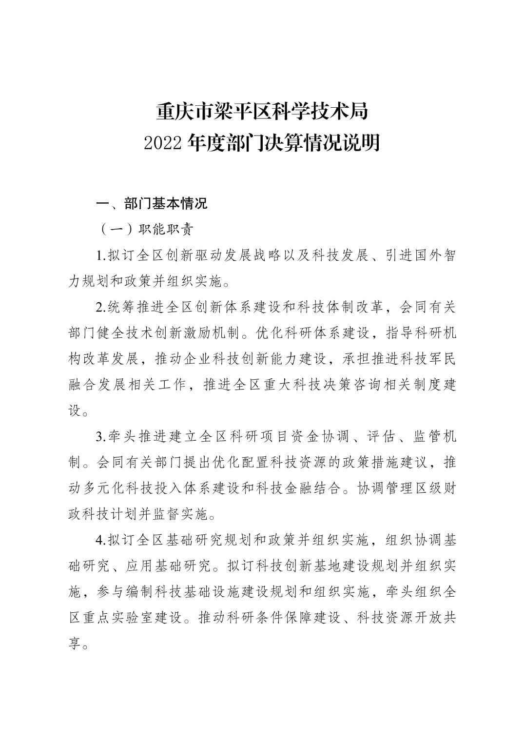 標題 重慶市梁平區科學技術局2022年度部門決算情況說明