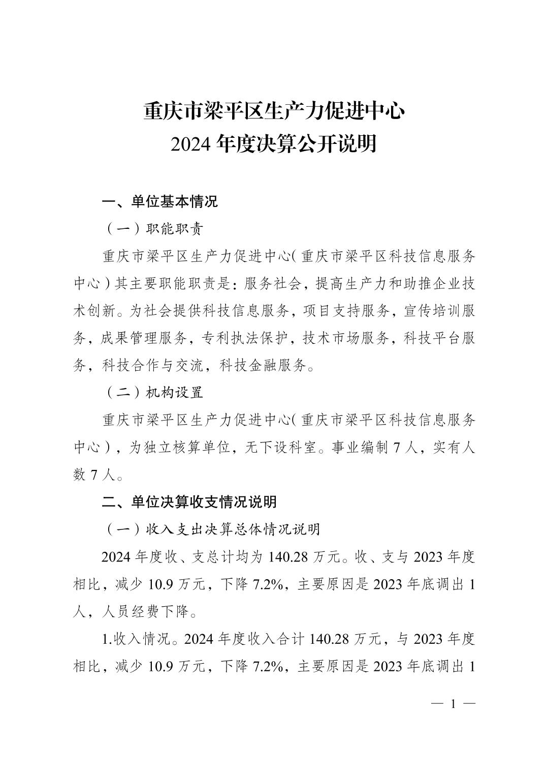 | 標題 | 重慶市梁平區生產力促進中心2024年度決算公開說明 |