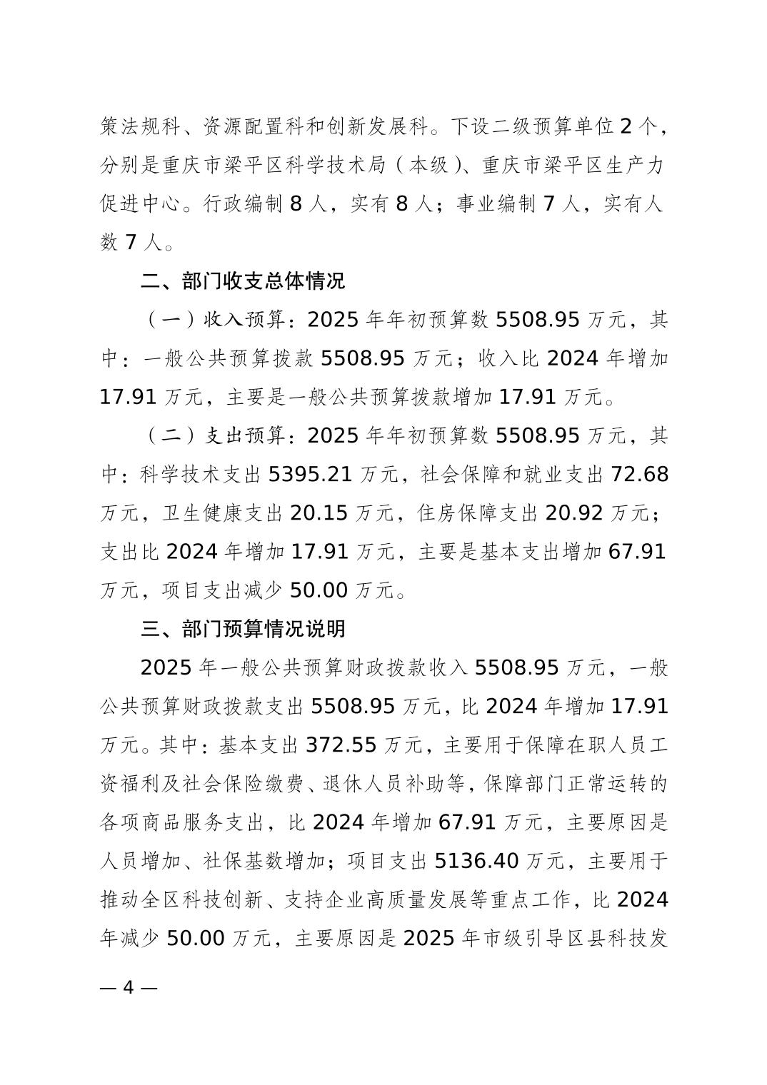 | 標題 | 重慶市梁平區科學技術局 2025年部門預算情況說明 |