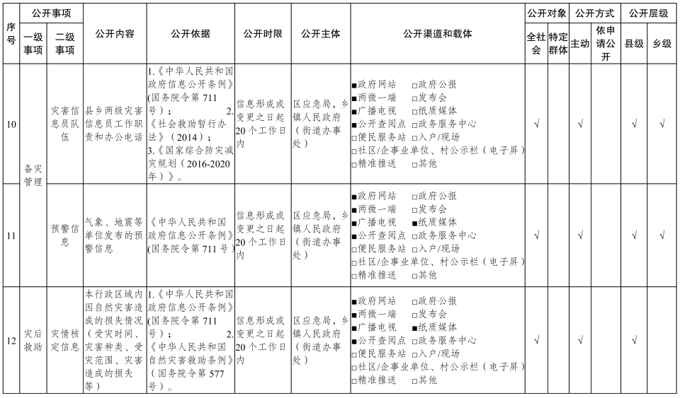 重慶市梁平區(qū)鄉(xiāng)鎮(zhèn)(街道)救災(zāi)領(lǐng)域基層政務(wù)公開標(biāo)準(zhǔn)目錄