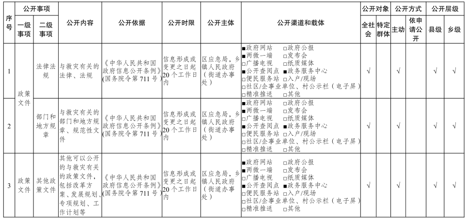 重慶市梁平區(qū)鄉(xiāng)鎮(zhèn)(街道)救災(zāi)領(lǐng)域基層政務(wù)公開標(biāo)準(zhǔn)目錄