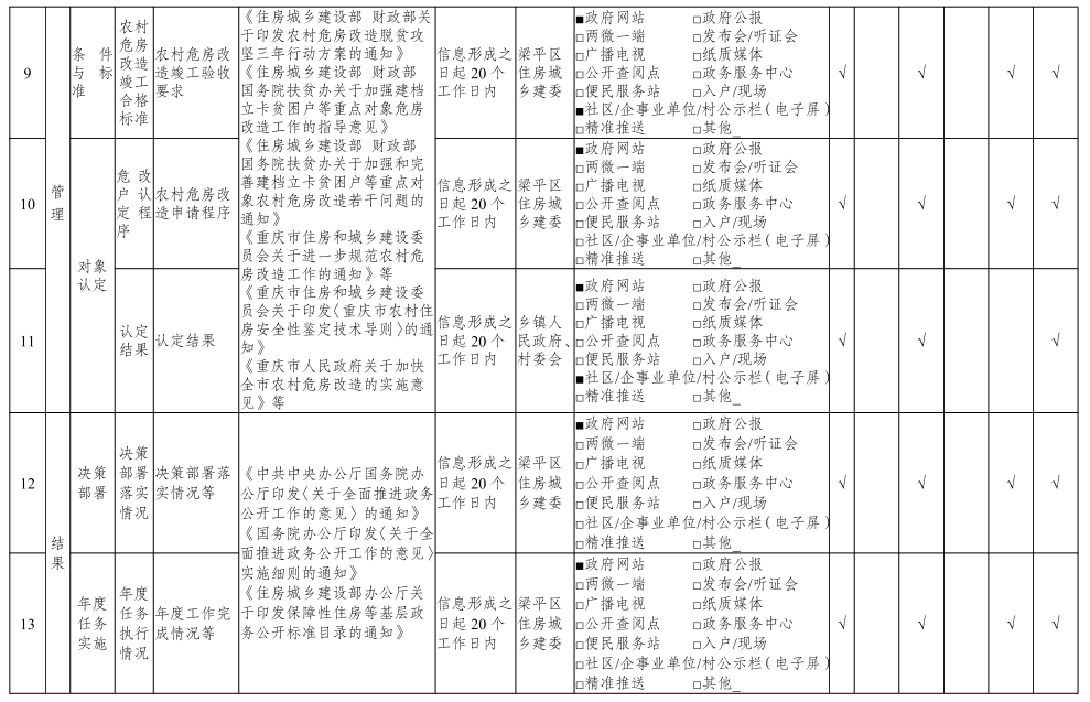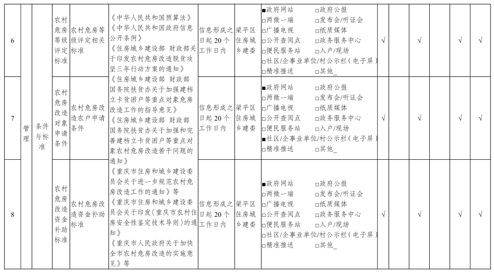 重慶市梁平區(qū)鄉(xiāng)鎮(zhèn)(街道)農(nóng)村危房改造領(lǐng)域基層政務(wù)公開標(biāo)準(zhǔn)目錄