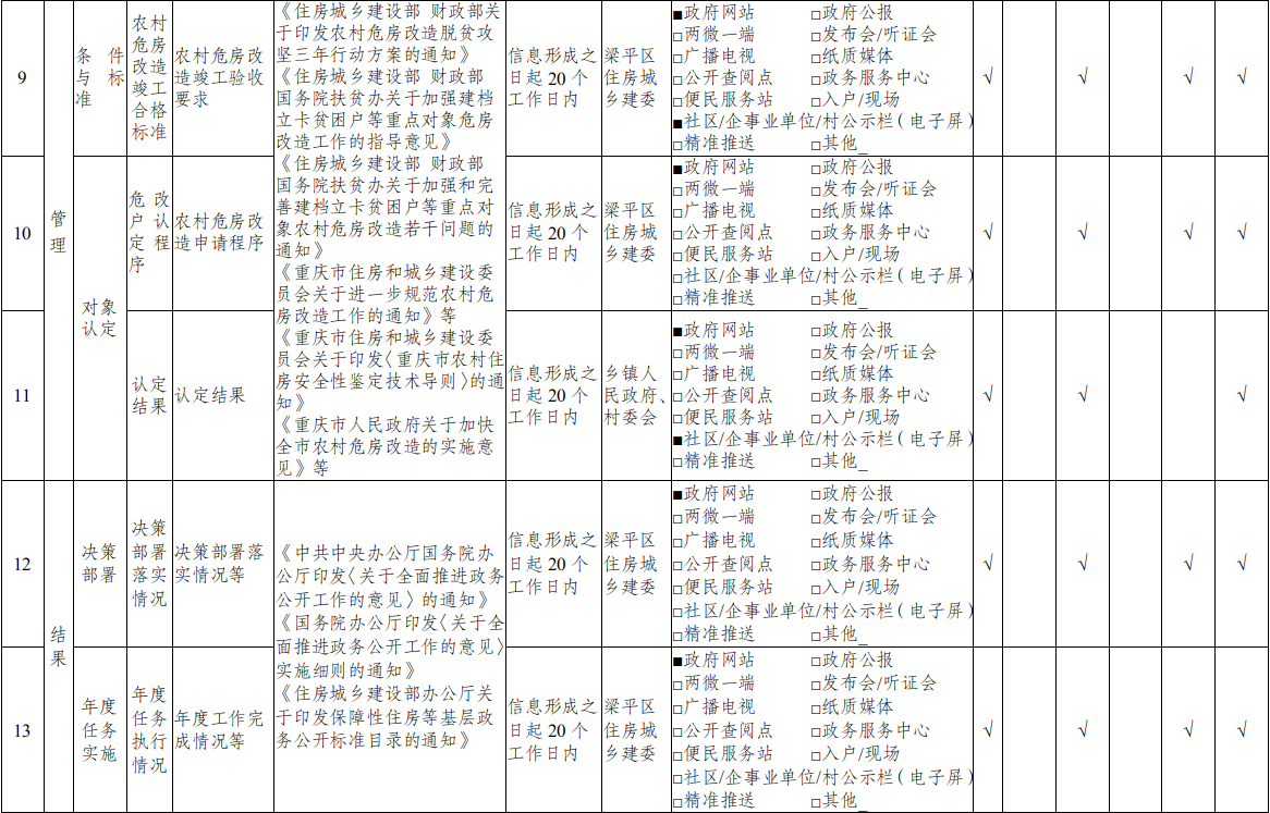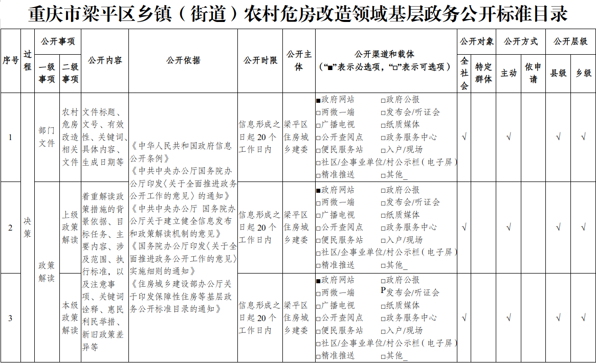 重慶市梁平區(qū)鄉(xiāng)鎮(zhèn)(街道)農(nóng)村危房改造領(lǐng)域基層政務(wù)公開標(biāo)準(zhǔn)目錄