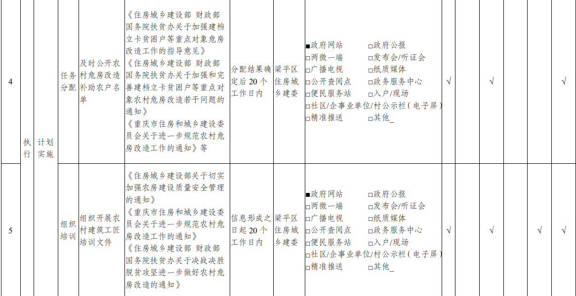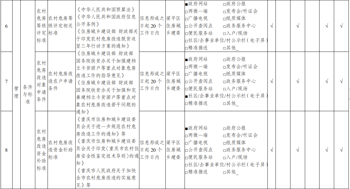 重慶市梁平區鄉鎮(街道)農村危房改造領域基層政務公開標準目錄