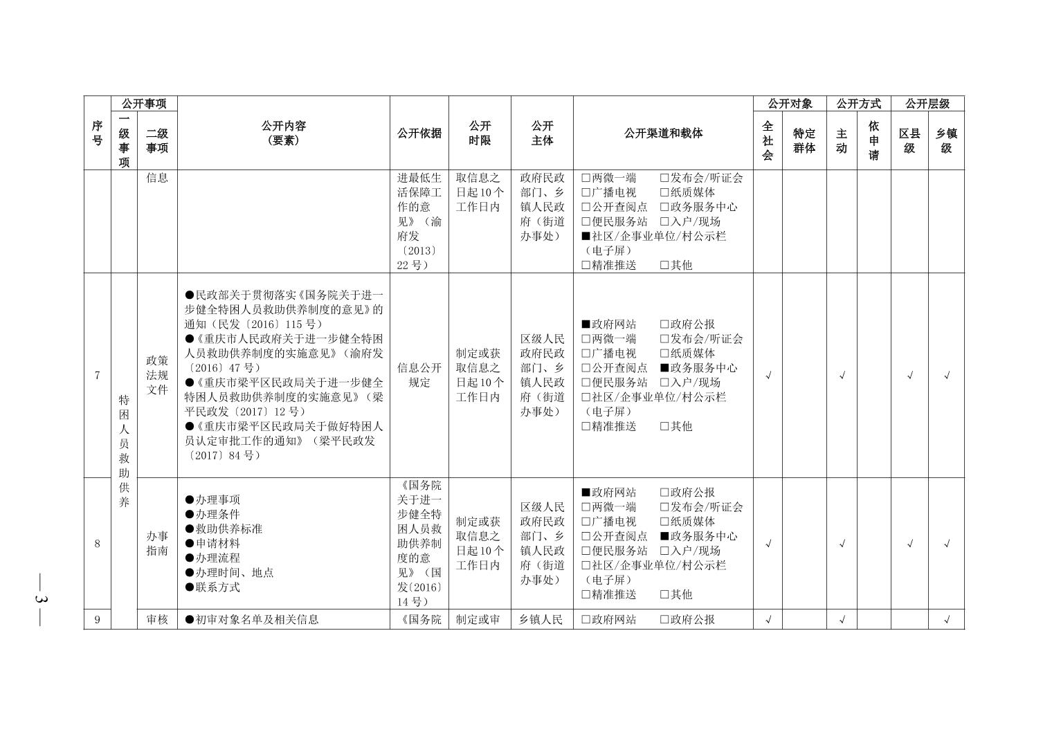 重慶市梁平區(qū)社會(huì)救助領(lǐng)域基層政務(wù)公開(kāi)標(biāo)準(zhǔn)目錄(2026年)