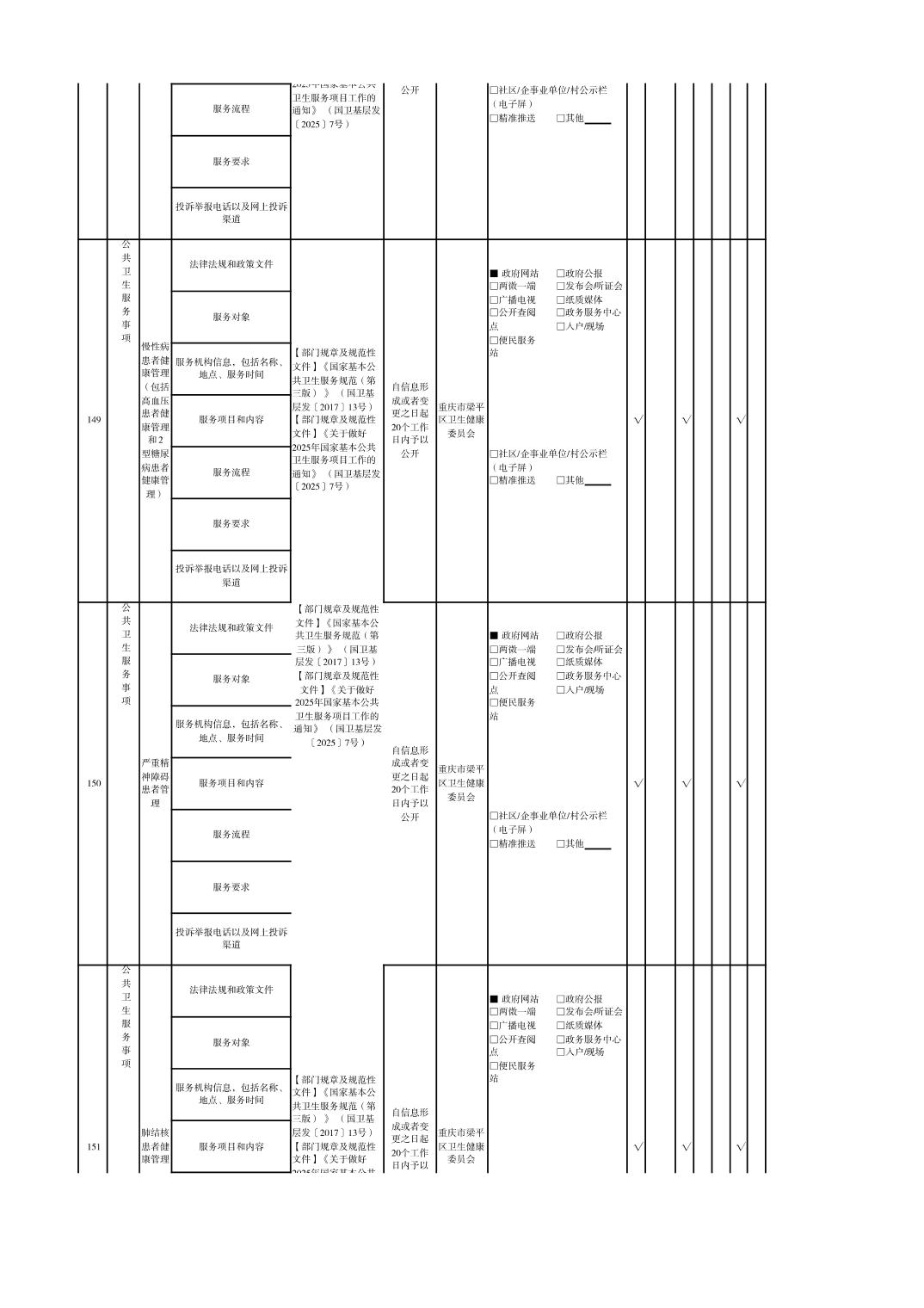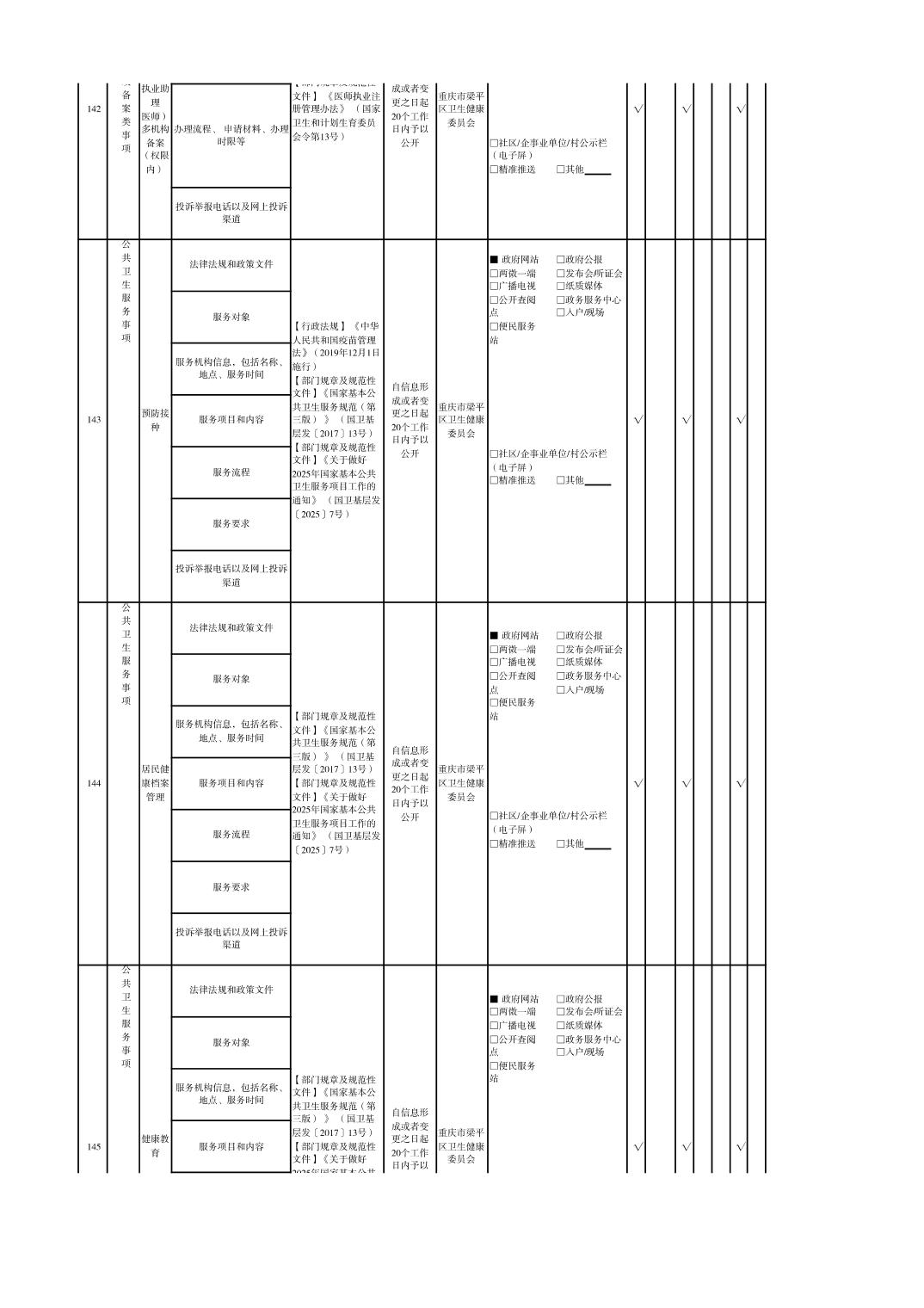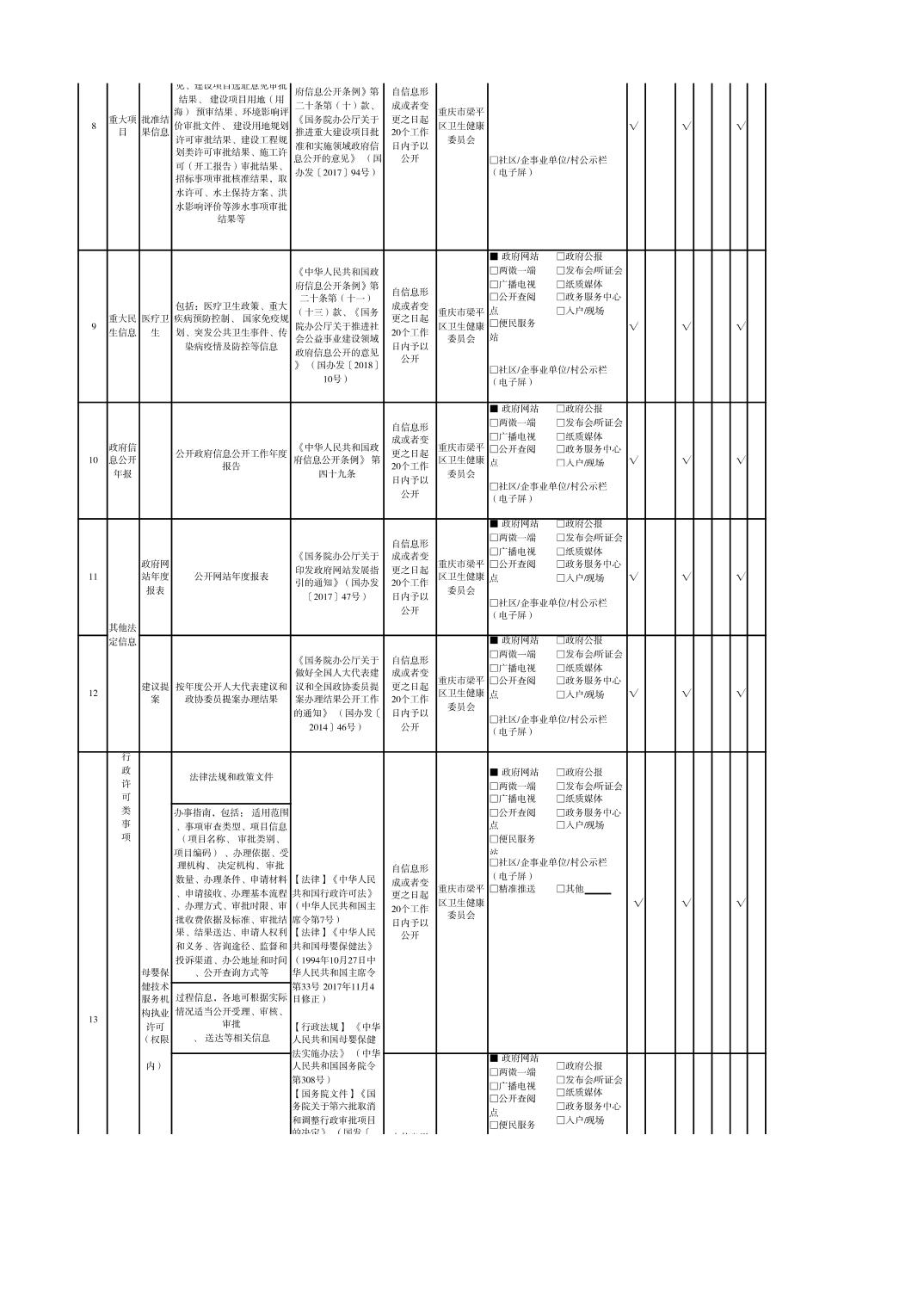 重慶市梁平區衛生健康領域基層政務公開標準目錄